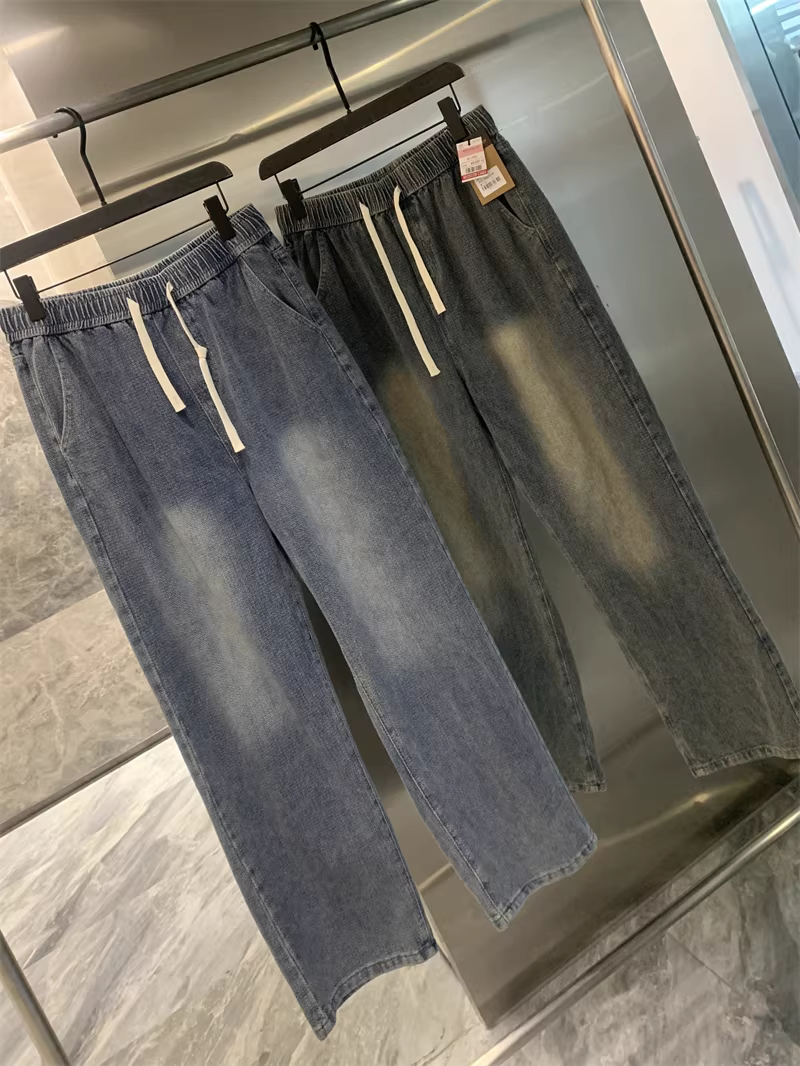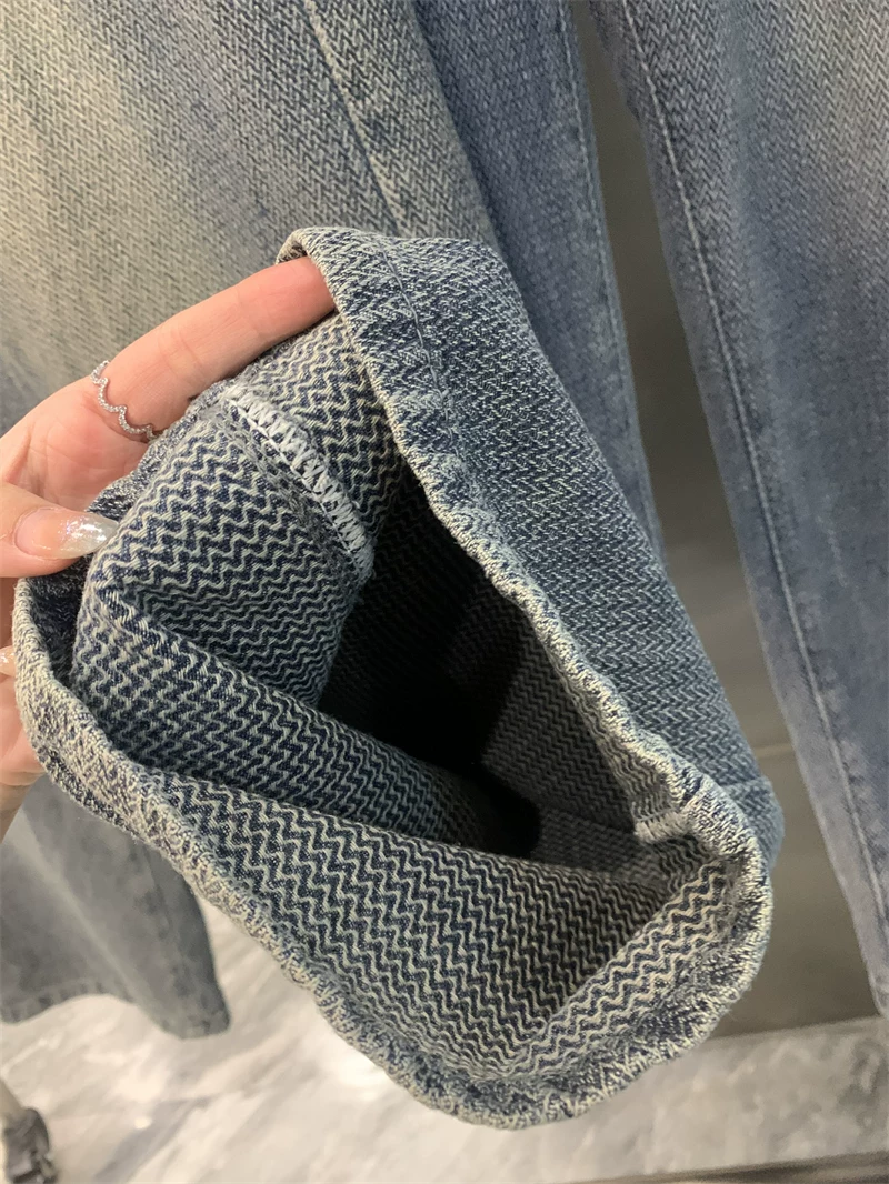 - Quần jean dáng thẳng phong cách đường phố, chất liệu jacquard xương cá hai mặt, kiểu Nhật cổ điển đã qua xử lý làm mềm!