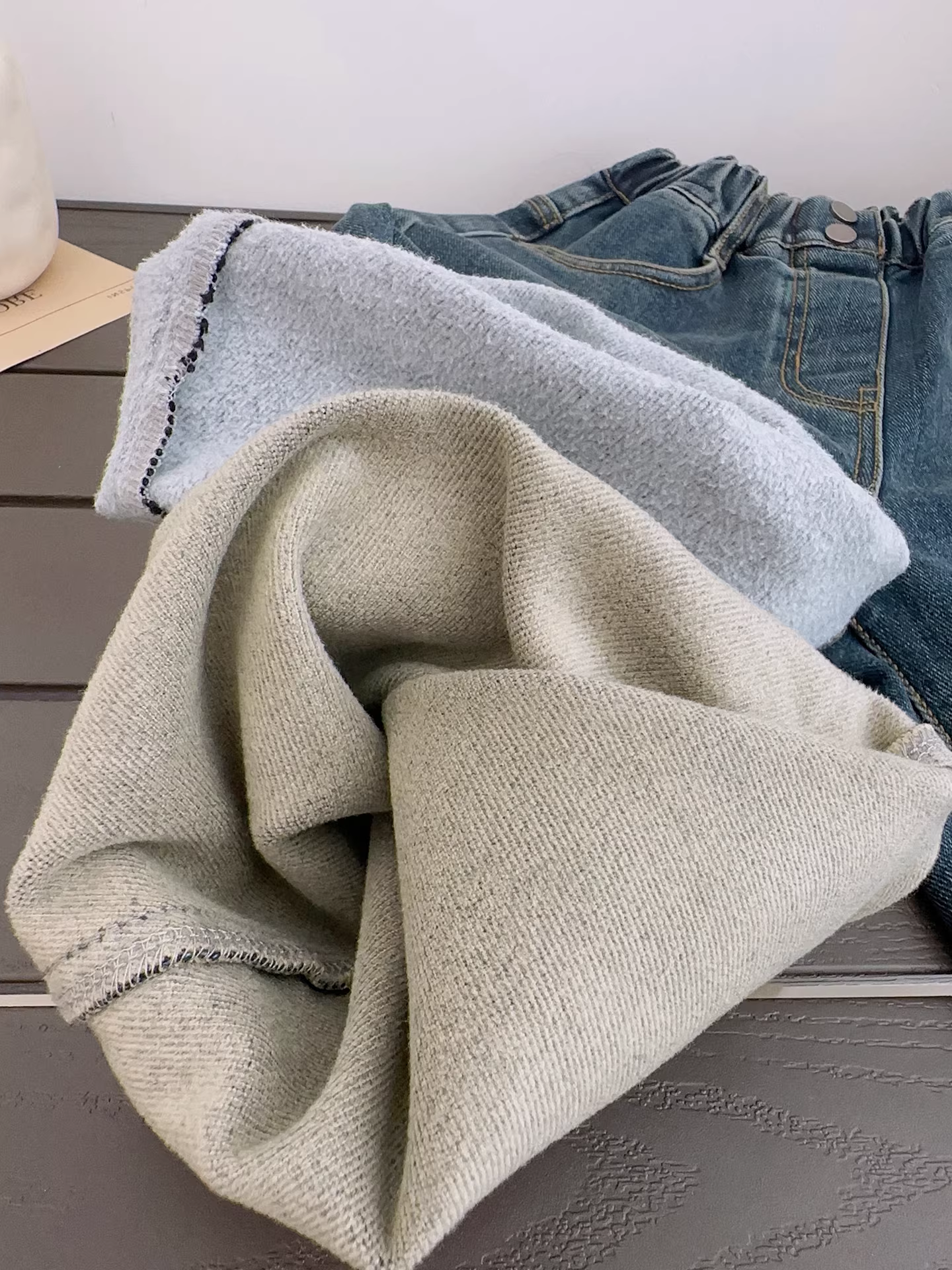 - Quần jean lông cừu thêu mới mùa thu đông dành cho bé gái, quần ống đứng chải mềm cho trẻ em, quần dài dáng suông nhỏ nhắn, phong cách thường ngày
