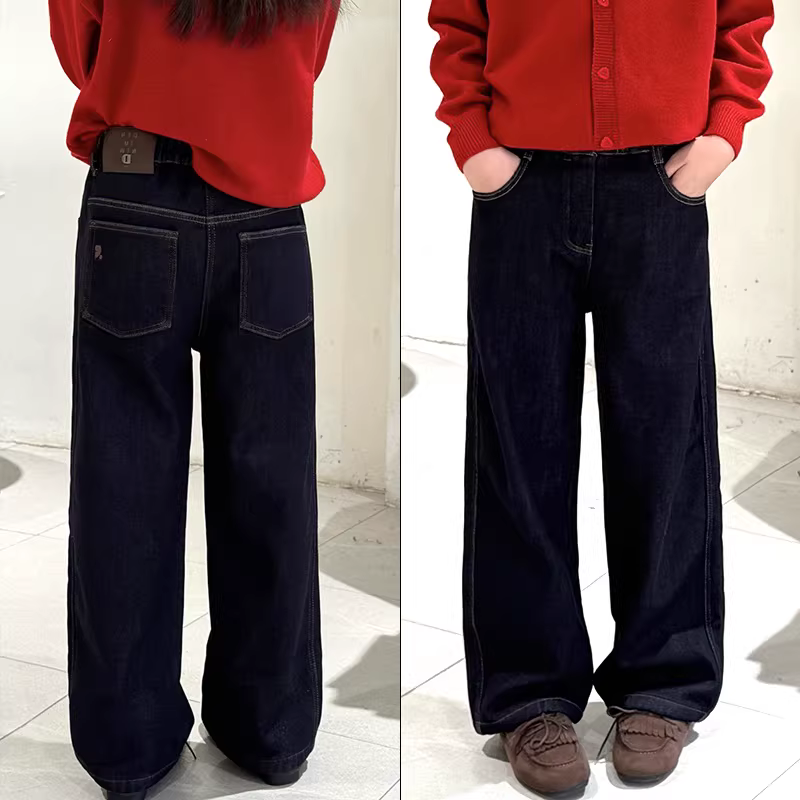 - Quần jean lót lông cừu cho bé gái, quần thường ngày, quần ống thẳng, quần áo trẻ em cỡ vừa và lớn, mùa thu đông, ống rộng, rộng rãi, dày dặn, đa năng, ấm áp và hợp thời trang.