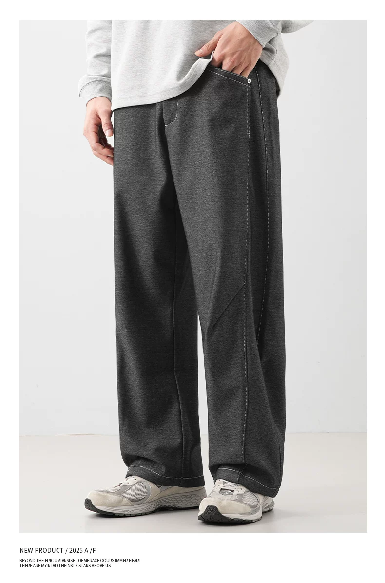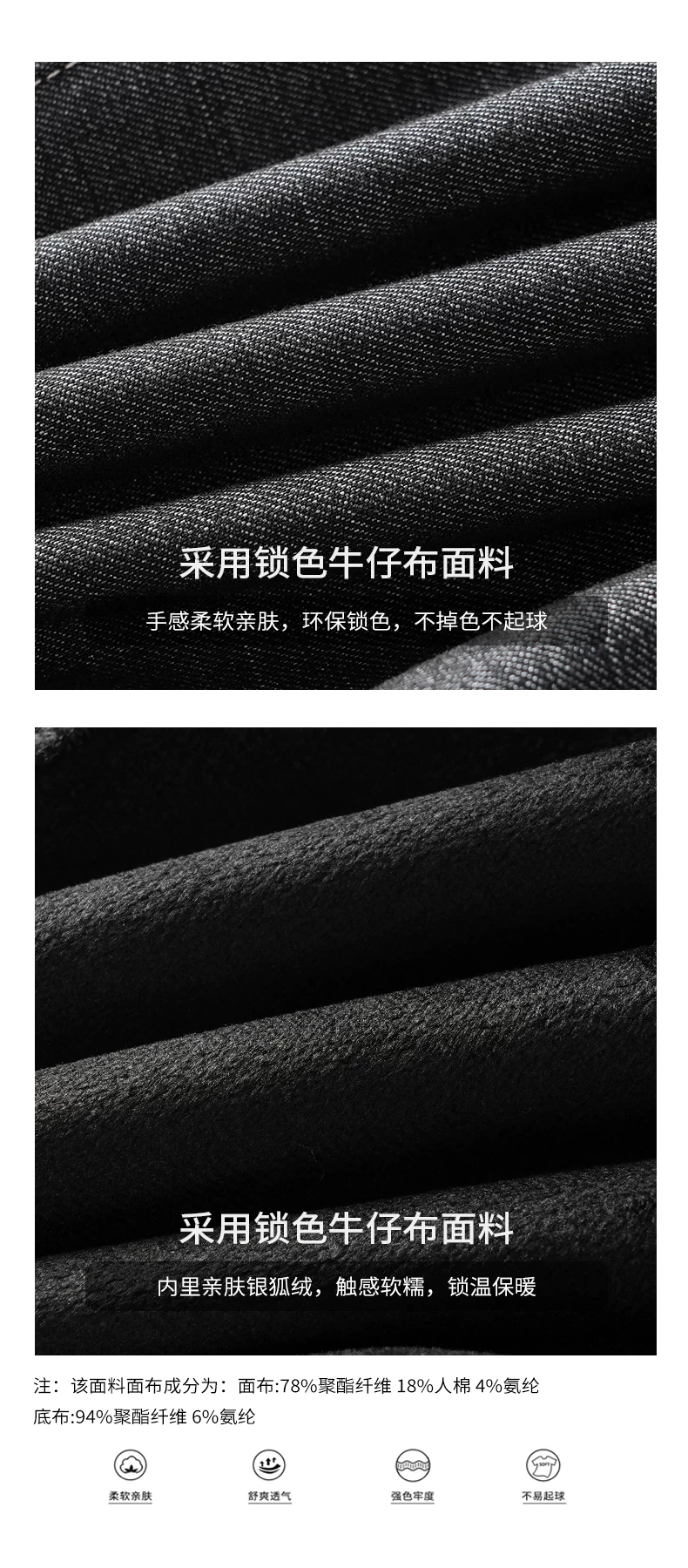 Quần jean lót lông cừu hạng nặng OMZM dành cho nam, quần ống rộng ống rộng ấm áp dày dặn mùa đông, quần ống rộng kiểu Mỹ.