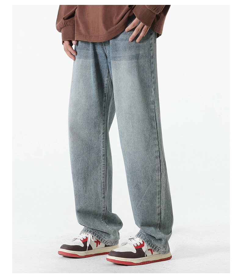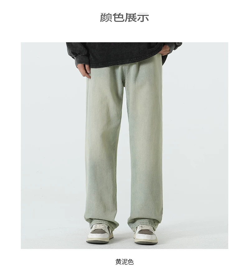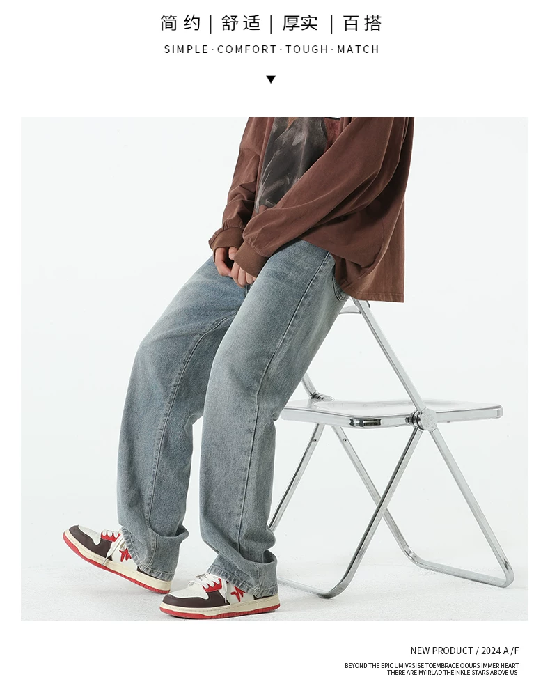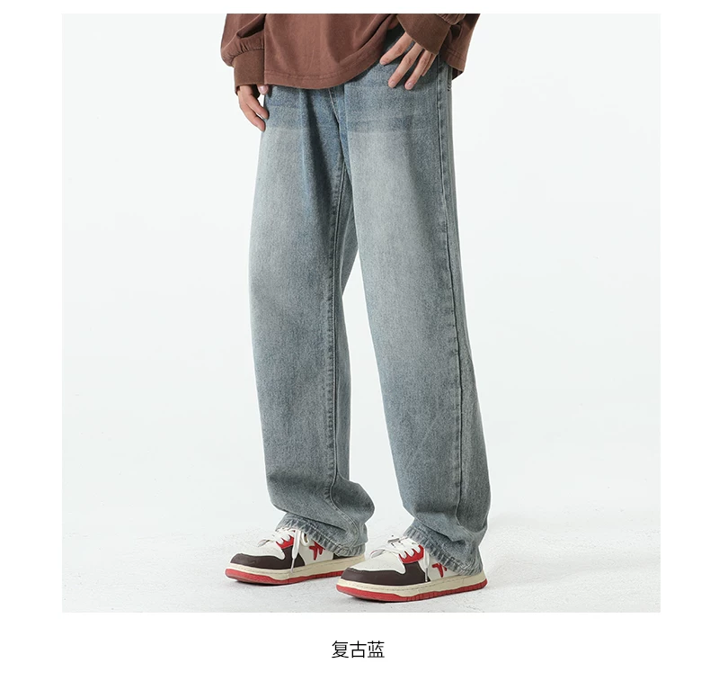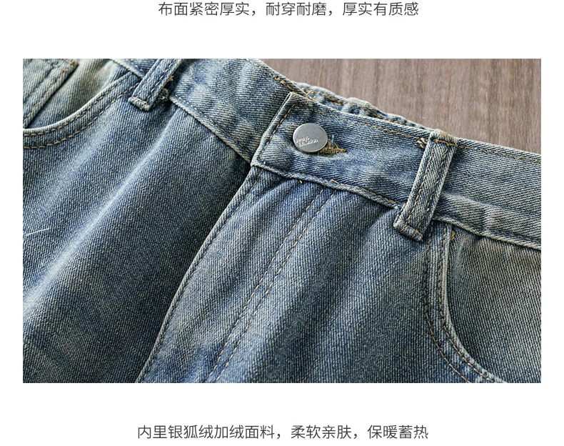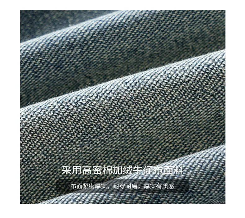 - Quần jean lót lông cừu hạng nặng OMZM dành cho nam, quần ống thẳng dày dặn ấm áp mùa thu đông, quần dài dáng rộng phong cách cổ điển.