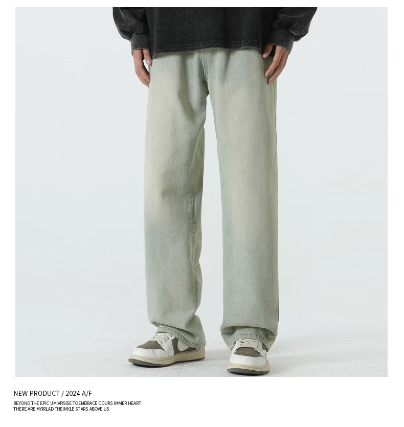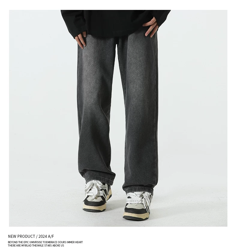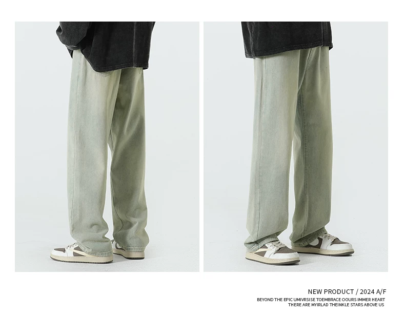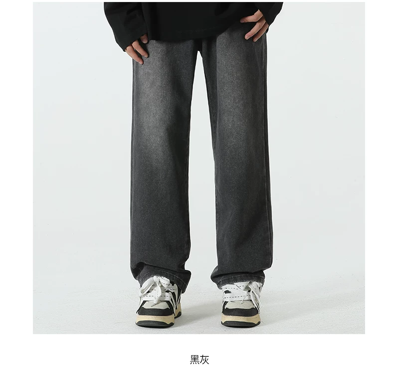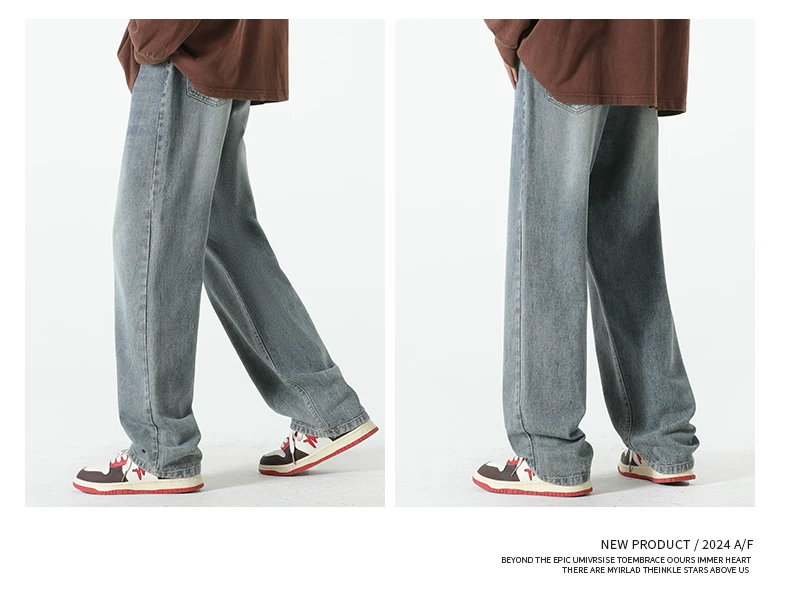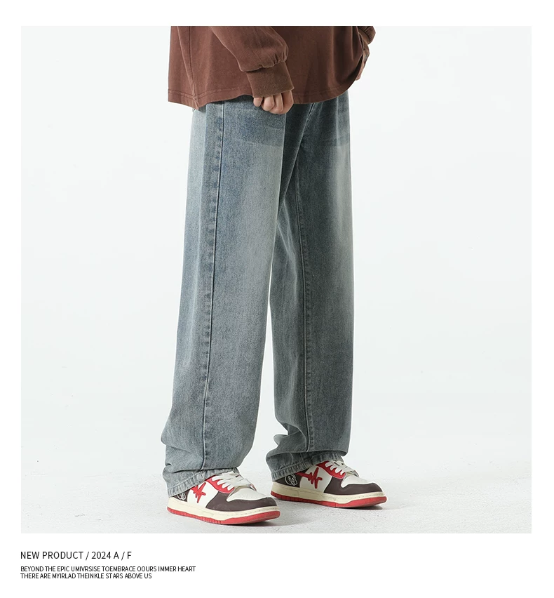 - Quần jean lót lông cừu hạng nặng OMZM dành cho nam, quần ống thẳng dày dặn ấm áp mùa thu đông, quần dài dáng rộng phong cách cổ điển.