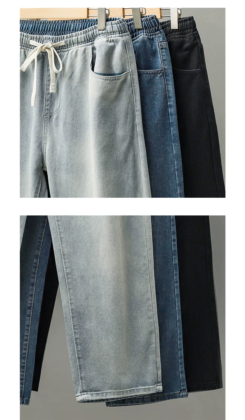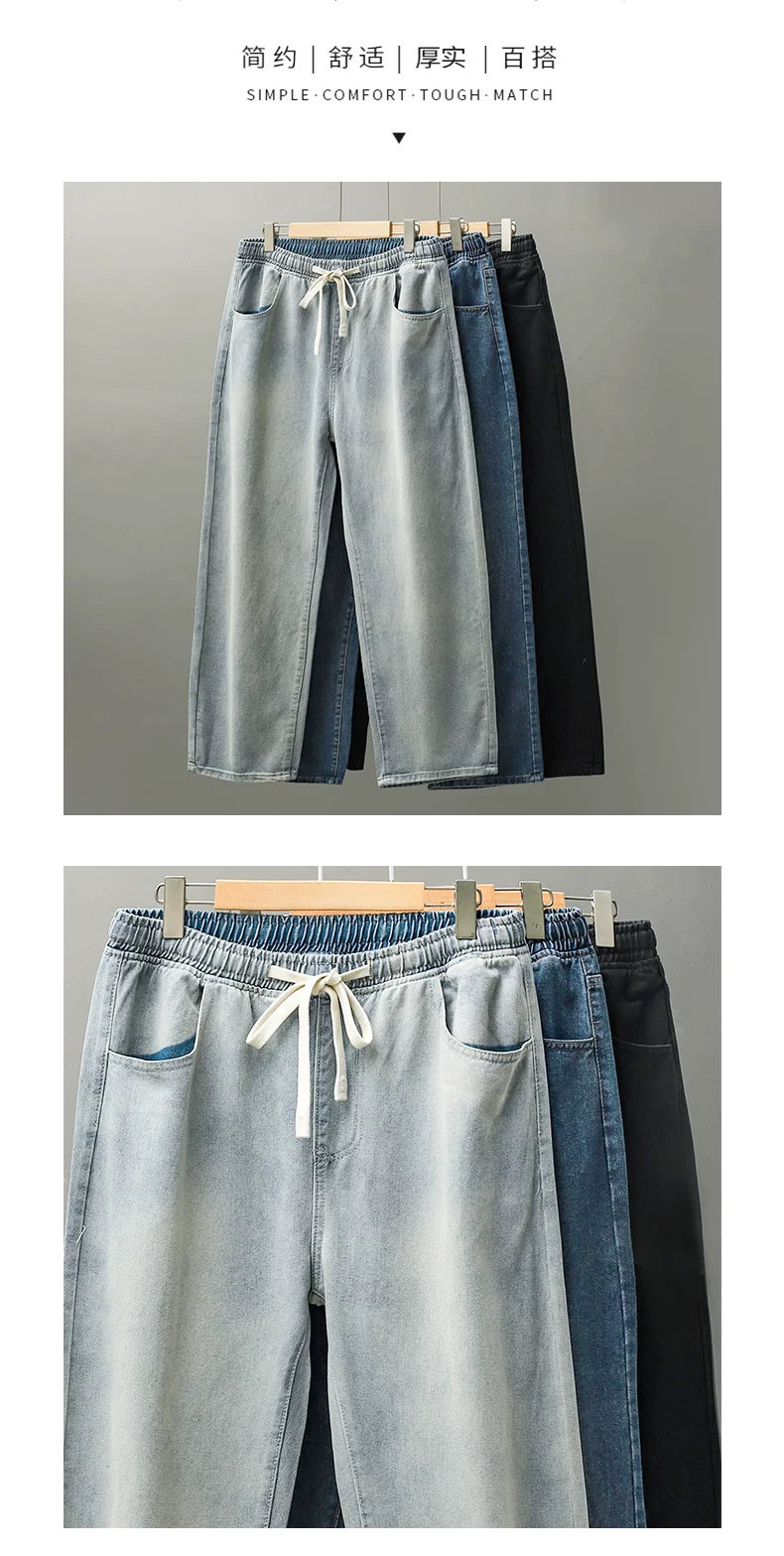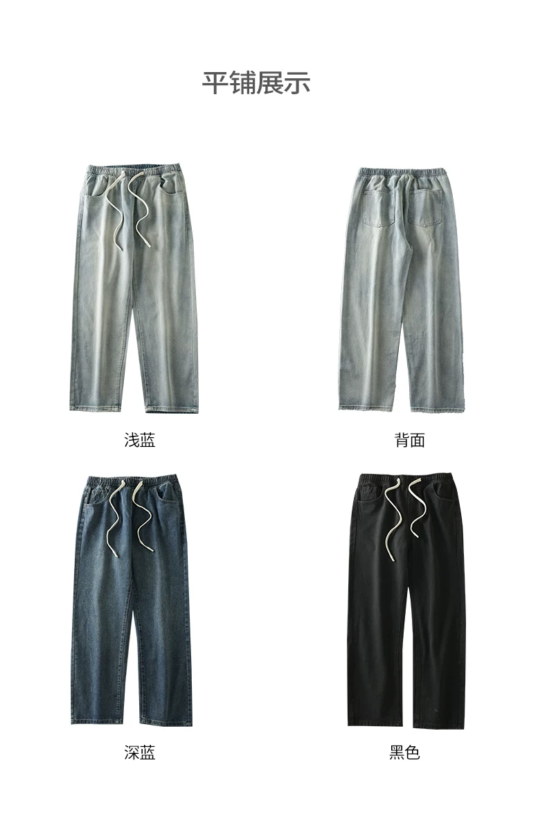 - Quần jean màu sáng kiểu cổ điển của OMZM dành cho nam giới, quần ống suông dáng rộng hợp thời trang mùa hè, quần dài đường phố cao cấp