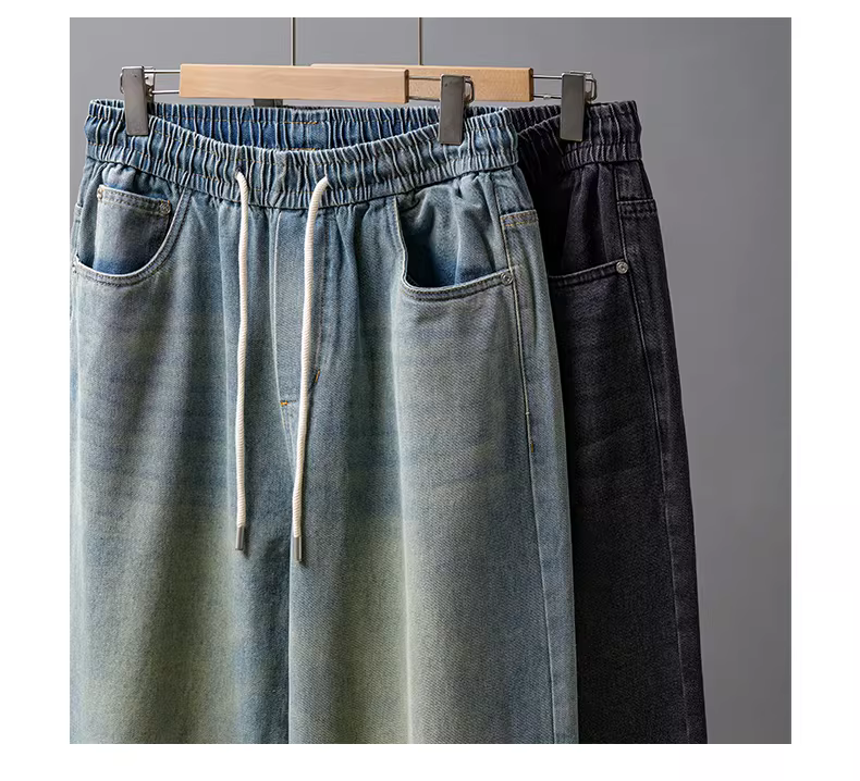 - Quần jean nam nặng ký cho mùa thu đông, kiểu Mỹ cổ điển, đã qua xử lý làm cũ và tạo hiệu ứng rách, dáng rộng, chất liệu mềm mại, quần ống rộng đa năng, kiểu dáng thẳng.