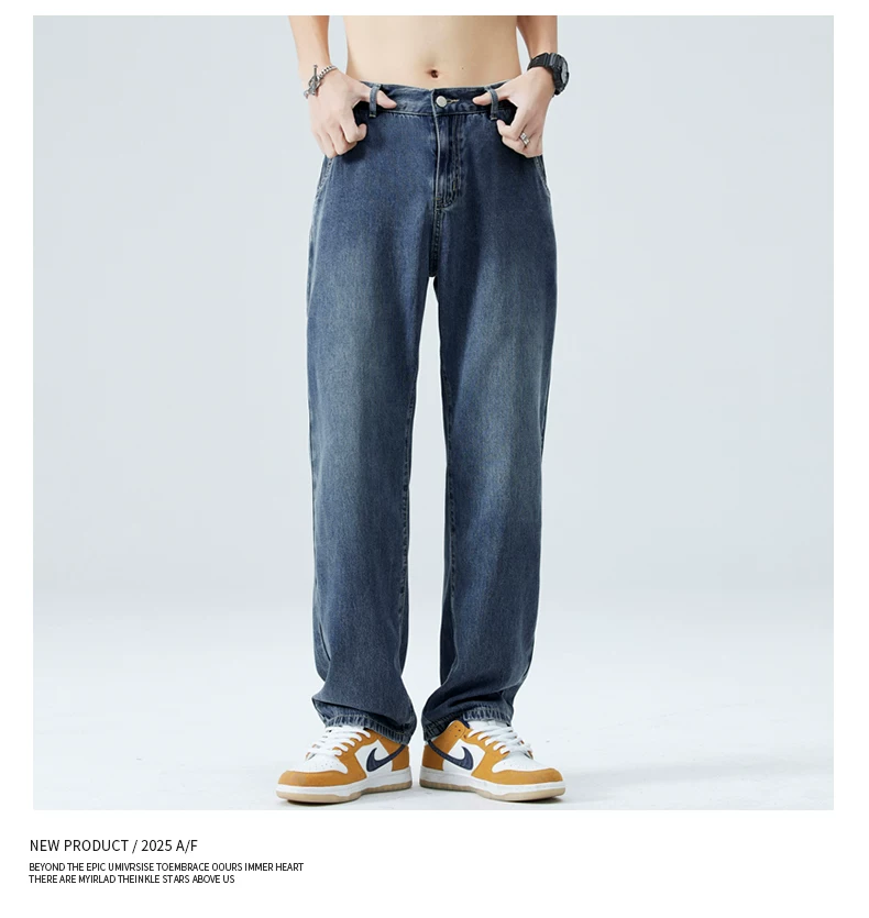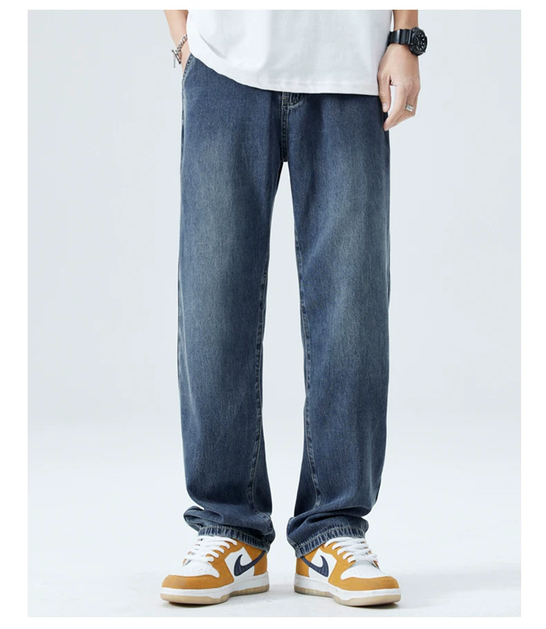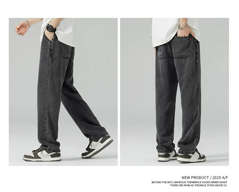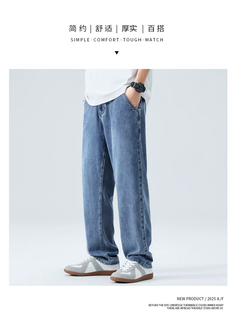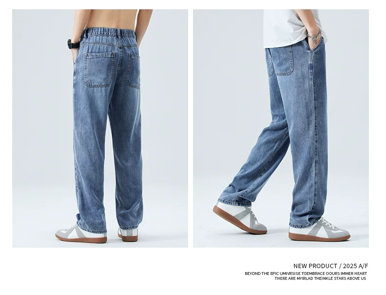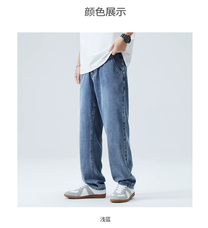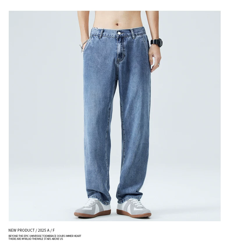- Quần Jean Nam OMZM Lyocell Tencel Mùa Hè Mỏng Mát Thoáng Khí Dáng Suông Rộng Quần Dài Thoải Mái