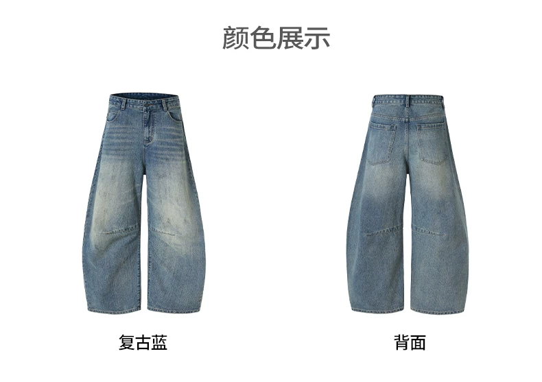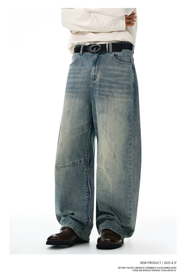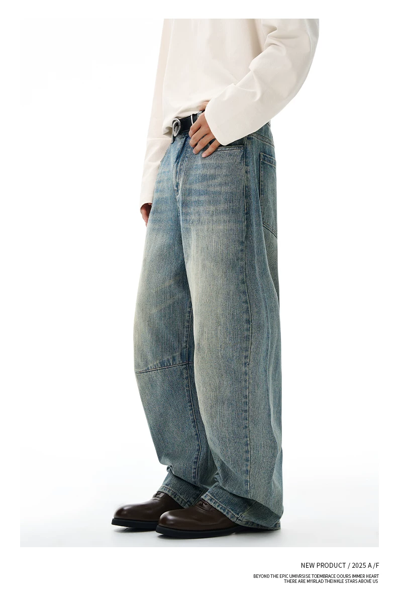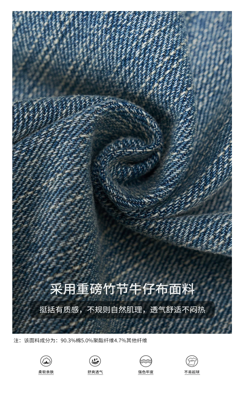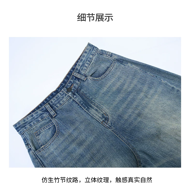 - Quần jean nam OMZM retro giặt mài, kiểu dáng mùa đông, chất liệu kaki, dáng rộng, ống thẳng, phong cách Mỹ, phối vải, kiểu dáng quần lửng.