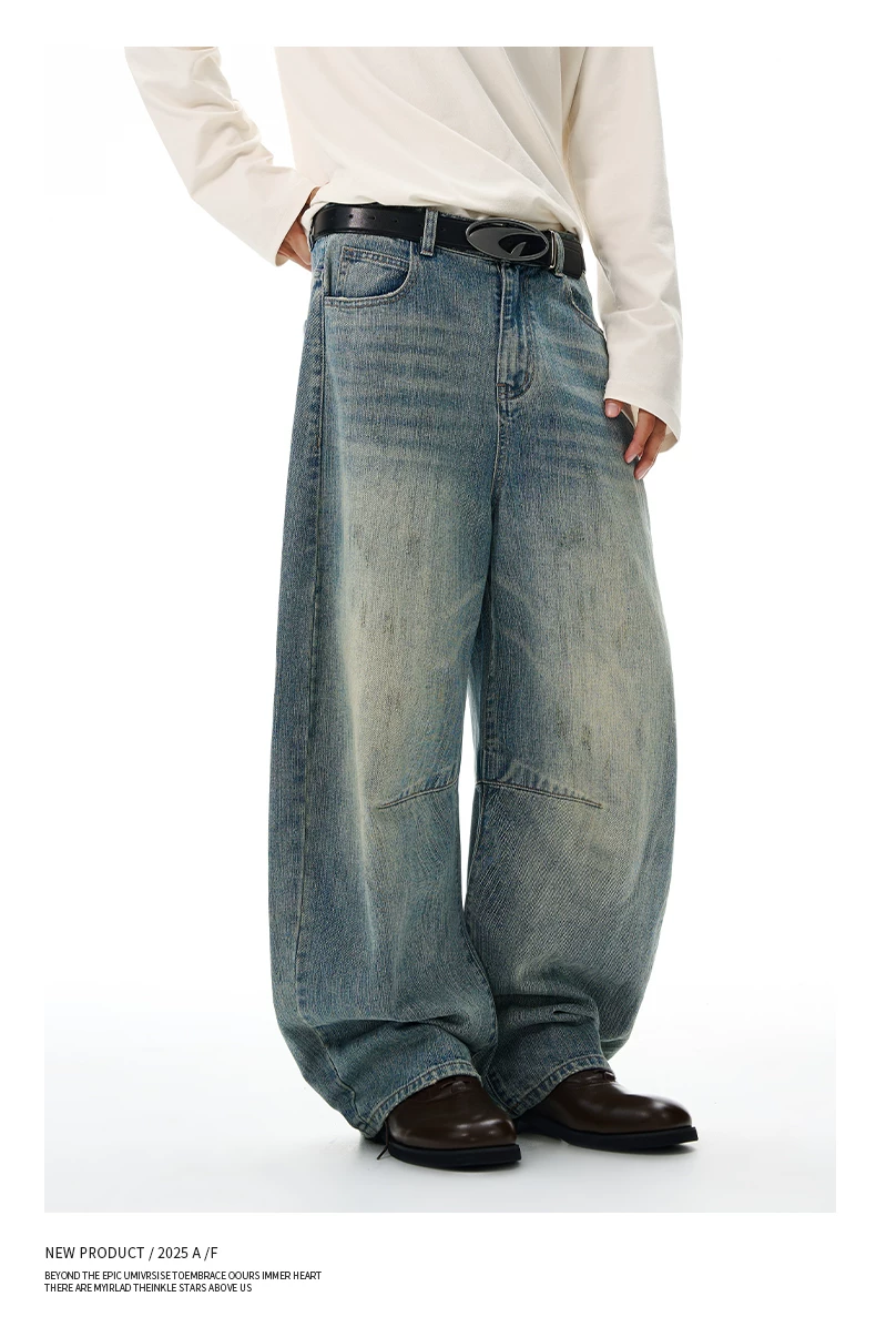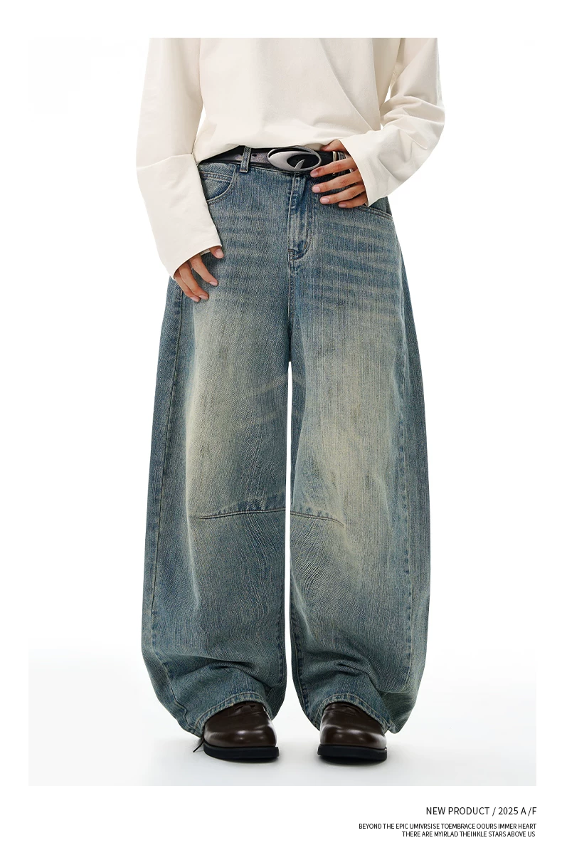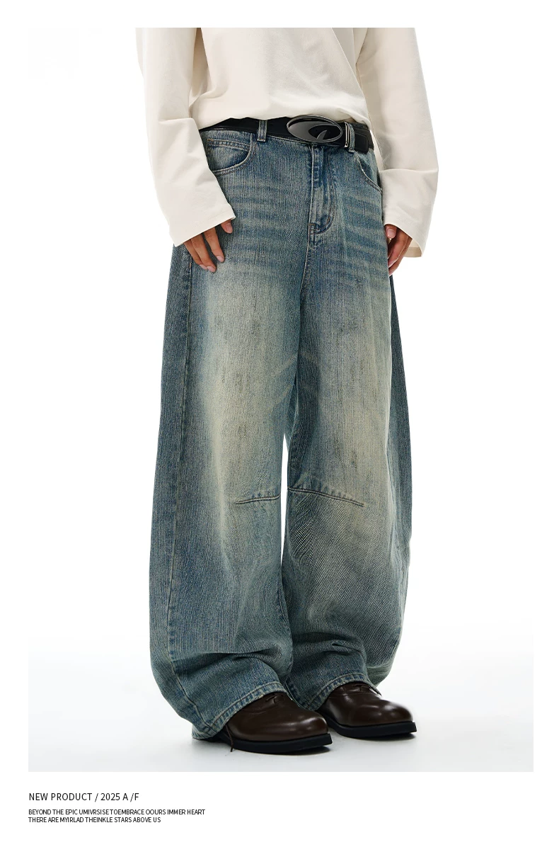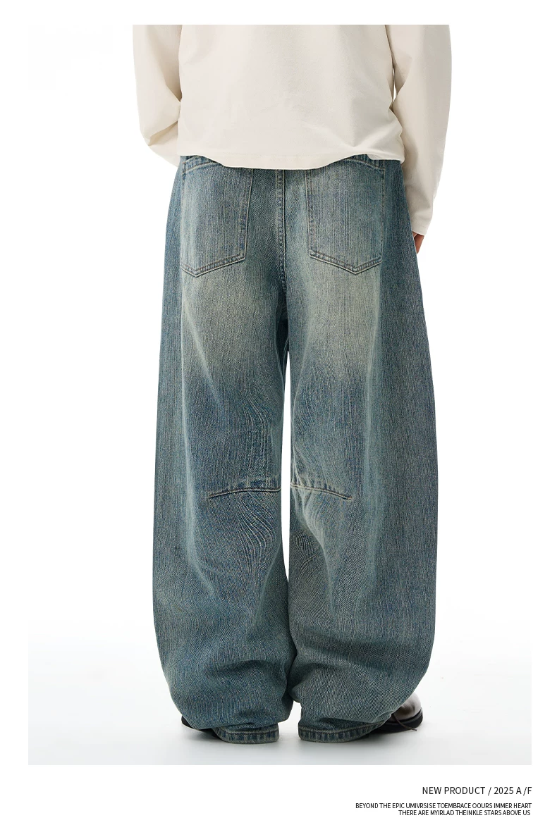 - Quần jean nam OMZM retro giặt mài, kiểu dáng mùa đông, chất liệu kaki, dáng rộng, ống thẳng, phong cách Mỹ, phối vải, kiểu dáng quần lửng.