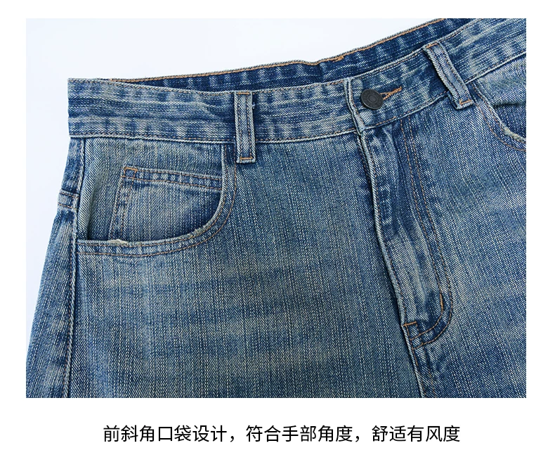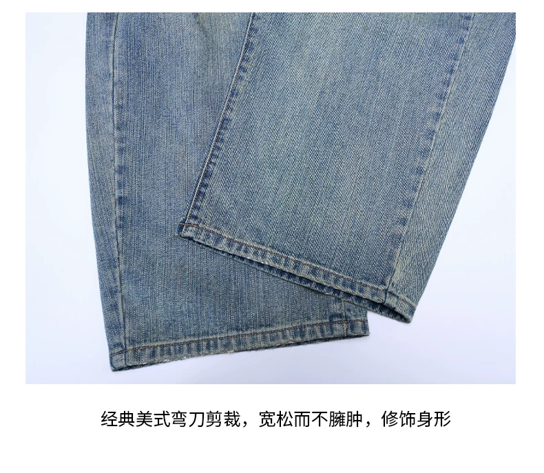 Quần jean nam OMZM retro giặt mài, kiểu dáng mùa đông, chất liệu kaki, dáng rộng, ống thẳng, phong cách Mỹ, phối vải, kiểu dáng quần lửng.