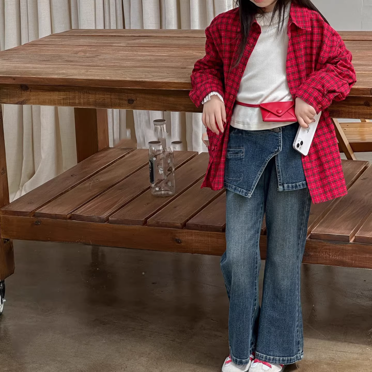 Quần jean nhung xòe có chân váy cho bé gái, mùa thu đông, quần áo trẻ em cỡ vừa và lớn, quần dài, quần ống rộng dáng rộng, dáng rộng.