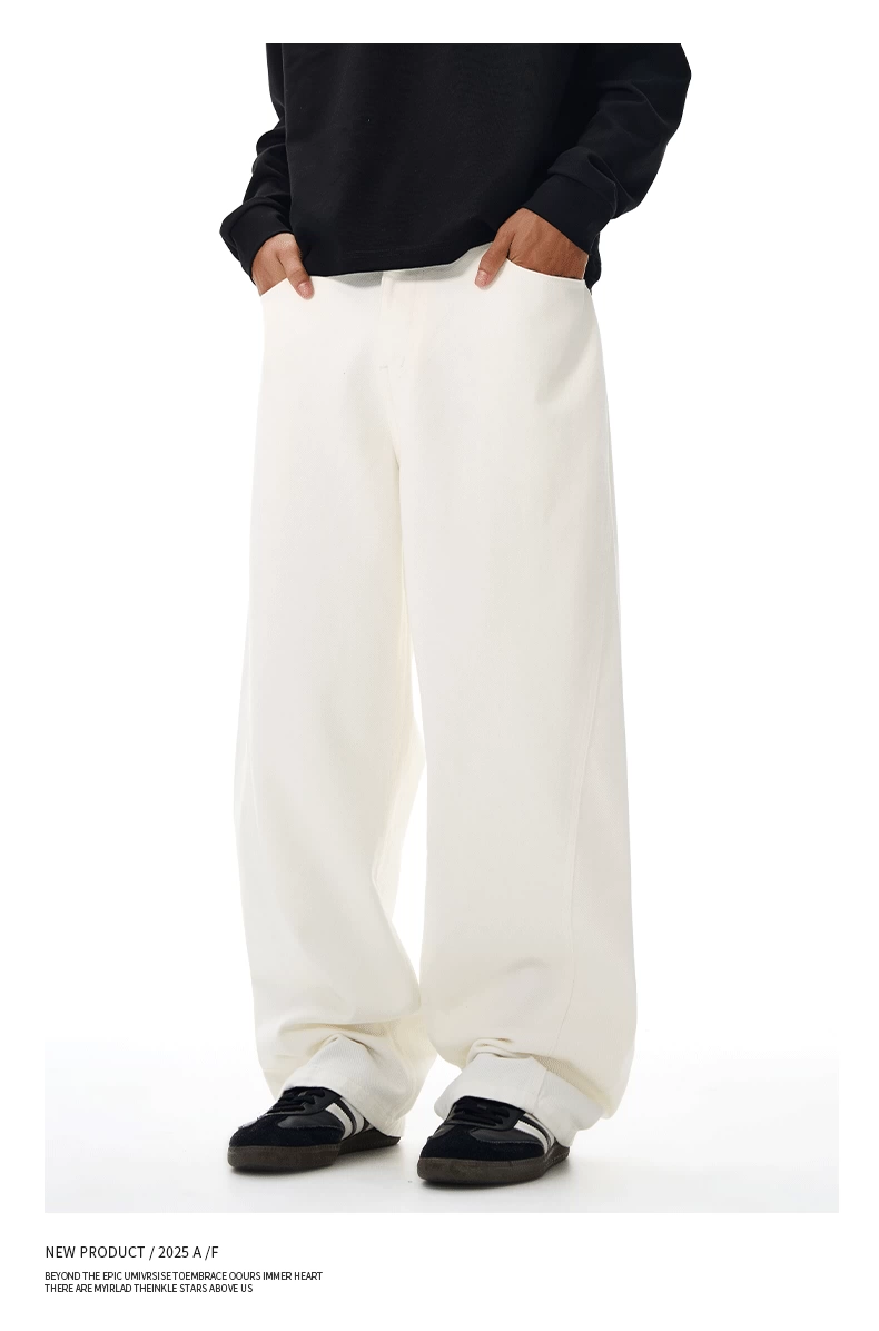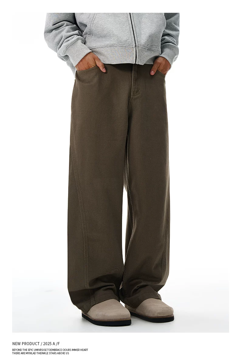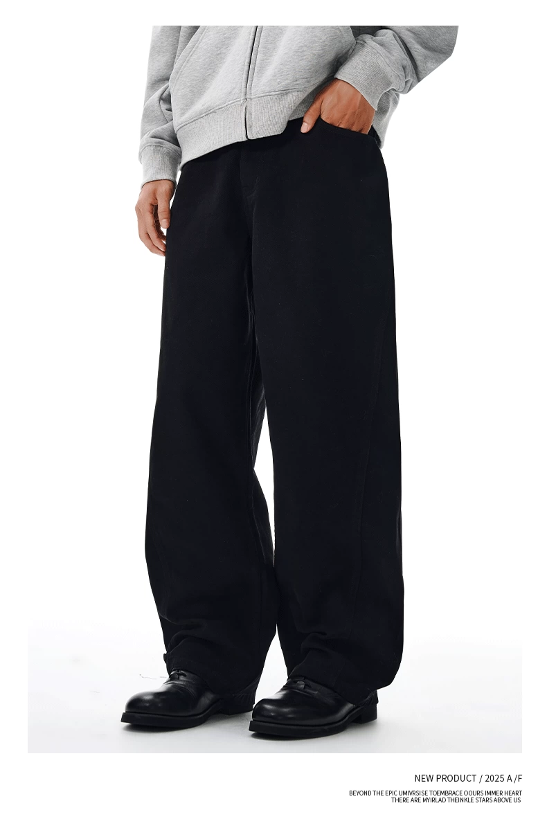 Quần jean OMZM retro carbon-washed dành cho nam, quần ống đứng dáng rộng Melard kiểu dáng đơn giản mùa đông, quần kiểu scimitar hợp thời trang