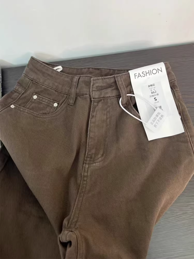 Quần jean ống đứng màu cà phê Melard dành cho nữ, kiểu mới thu đông 2025, size lớn, cạp cao, che hông, tôn dáng, quần dài ống rộng.