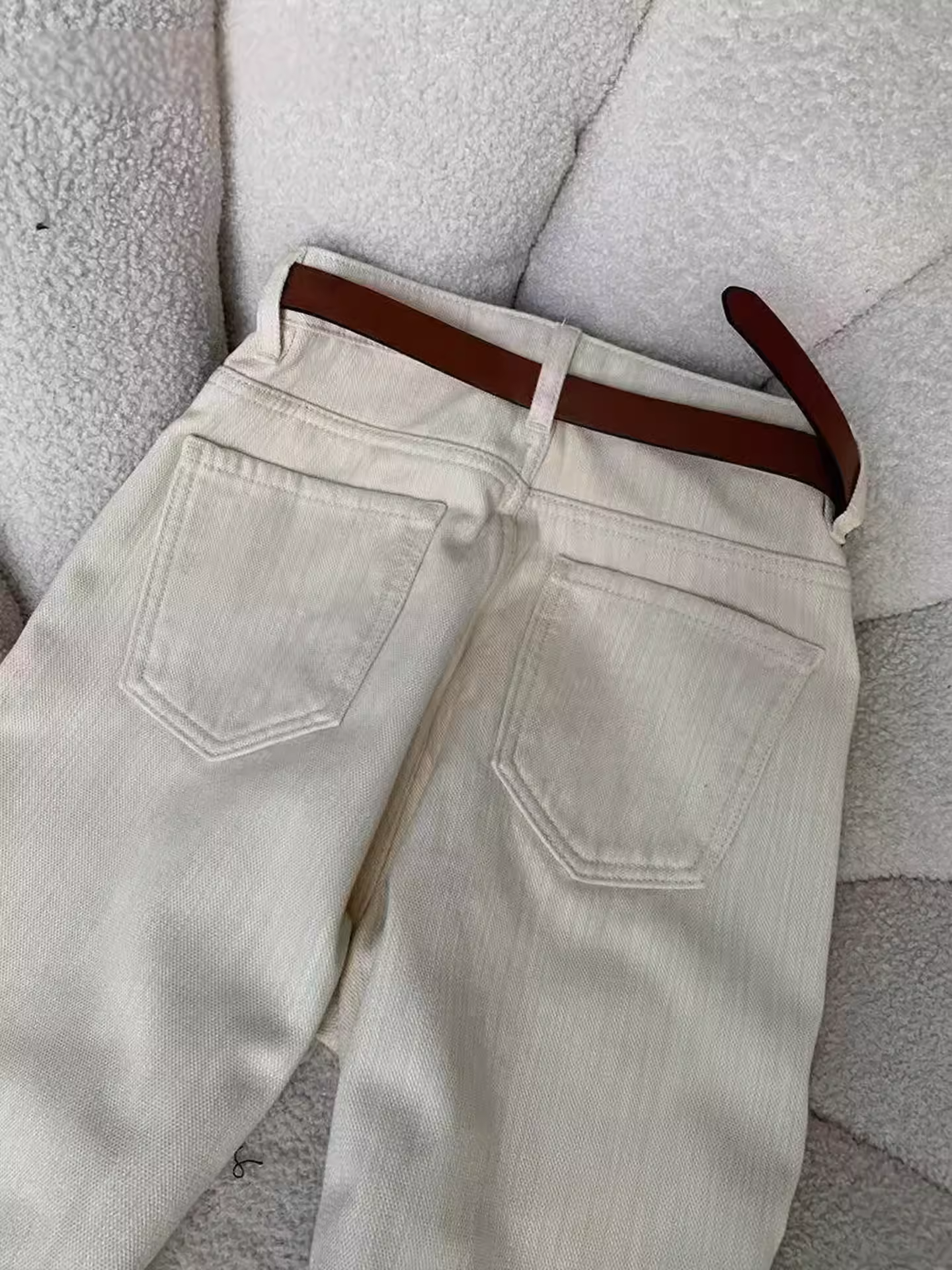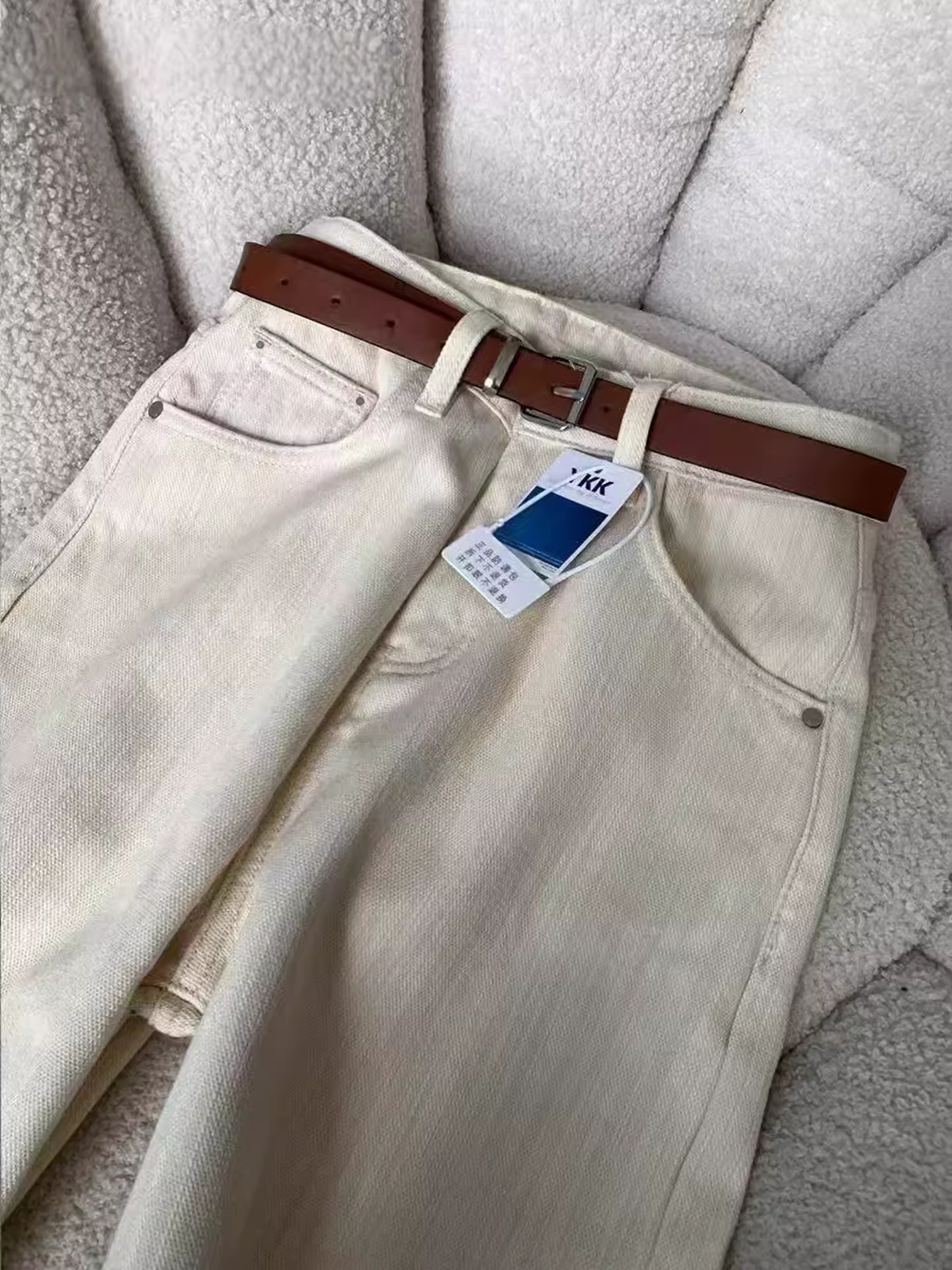 - Quần jean ống đứng màu mơ dành cho nữ, mùa đông 2025, size lớn, lót lông cừu, dày dặn, cạp cao, rộng rãi, ôm dáng, quần dài ống rộng.