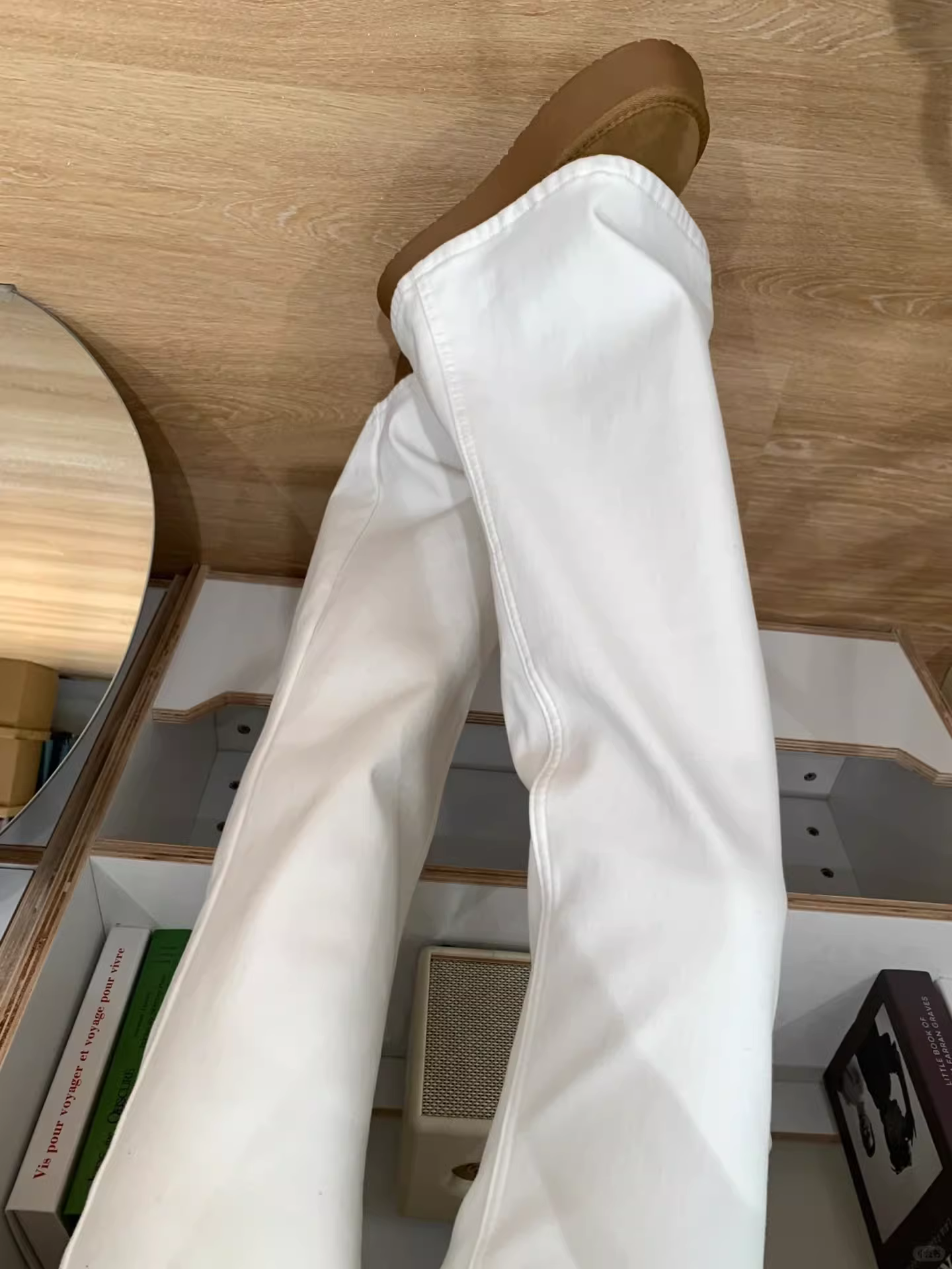- Quần jean ống đứng màu trắng dành cho nữ, mặc đầu thu, cỡ lớn, lưng cao, co giãn, giảm béo, dáng quả lê, quần ống chuông