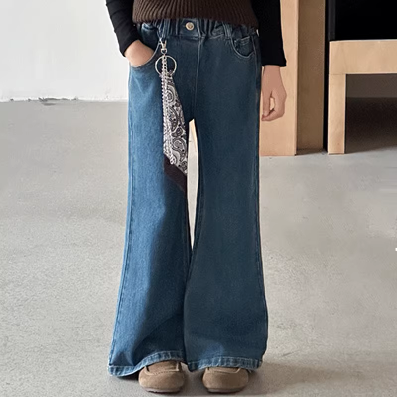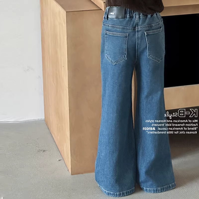 Quần jean ống đứng nữ bé gái, quần ống loe thời trang thu đông 2025 trẻ em, quần bootcut dáng suông tôn dáng nhỏ nhắn