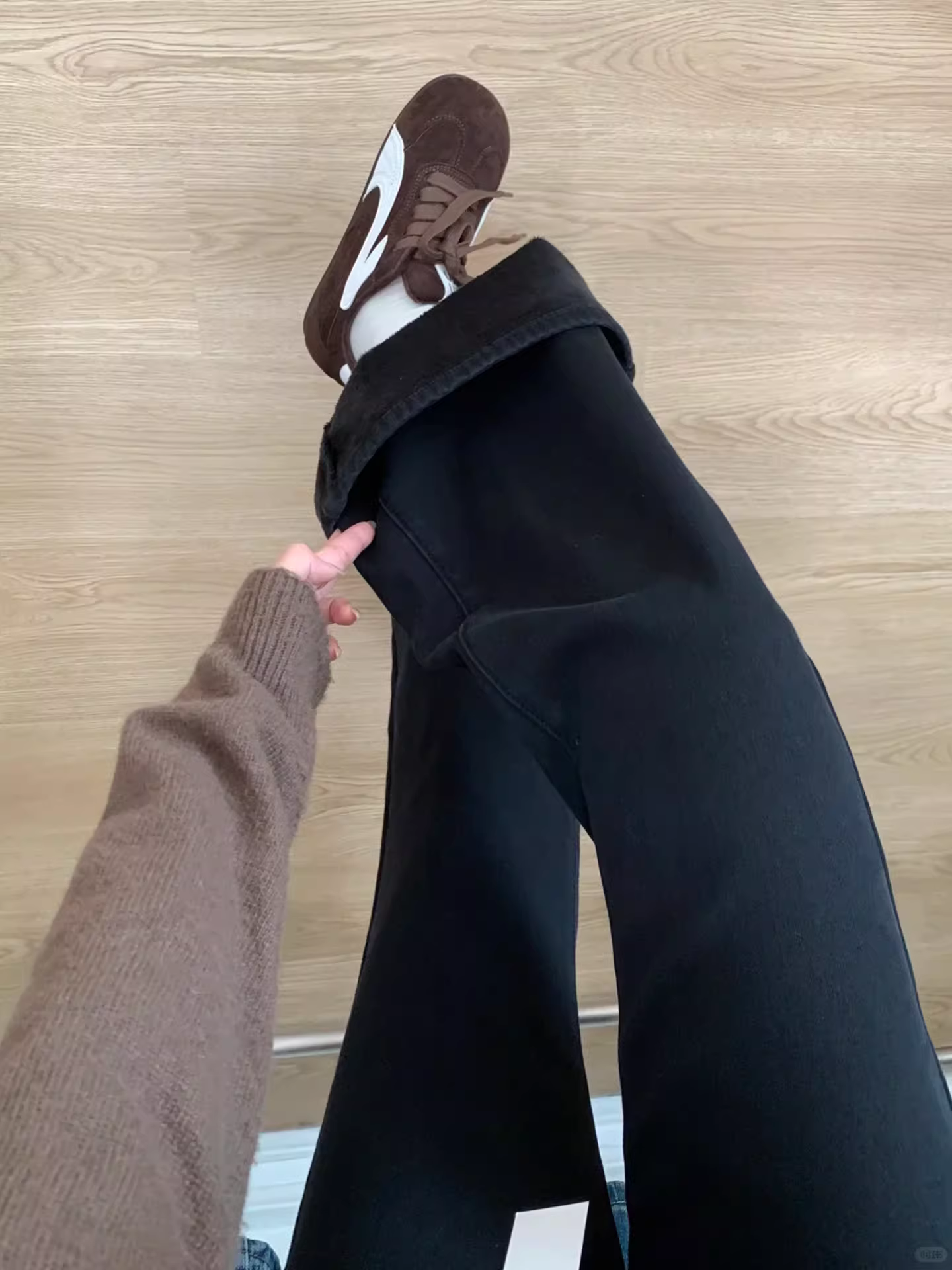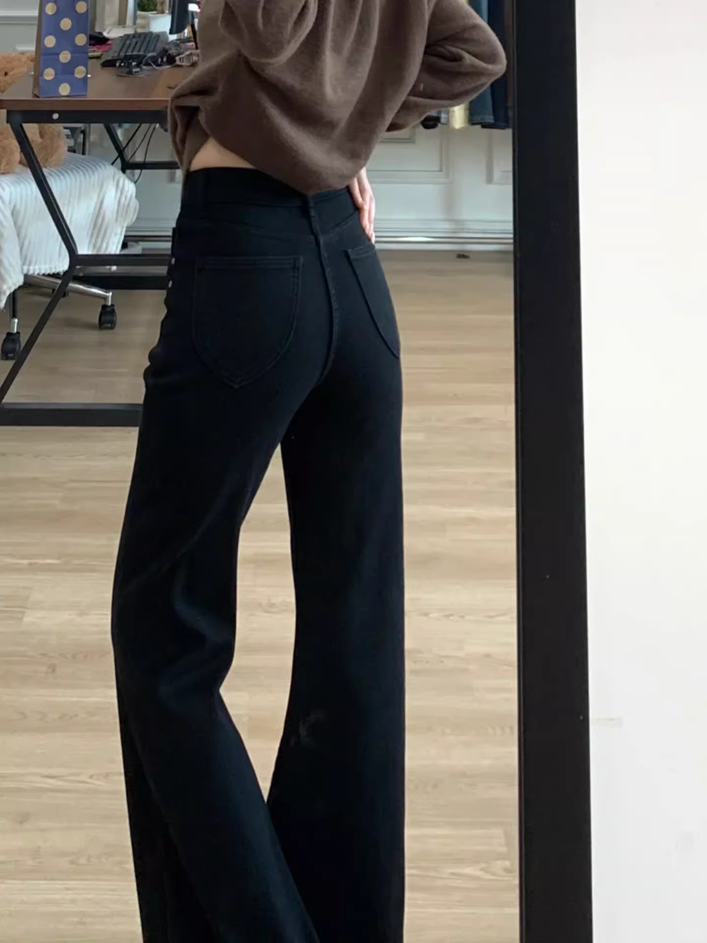 - Quần jean ống loe lưng cao màu đen dành cho nữ, mùa thu đông, cỡ lớn, lót lông cừu, dày dặn, co giãn, giảm béo, quần ống chuông, dài đến sàn