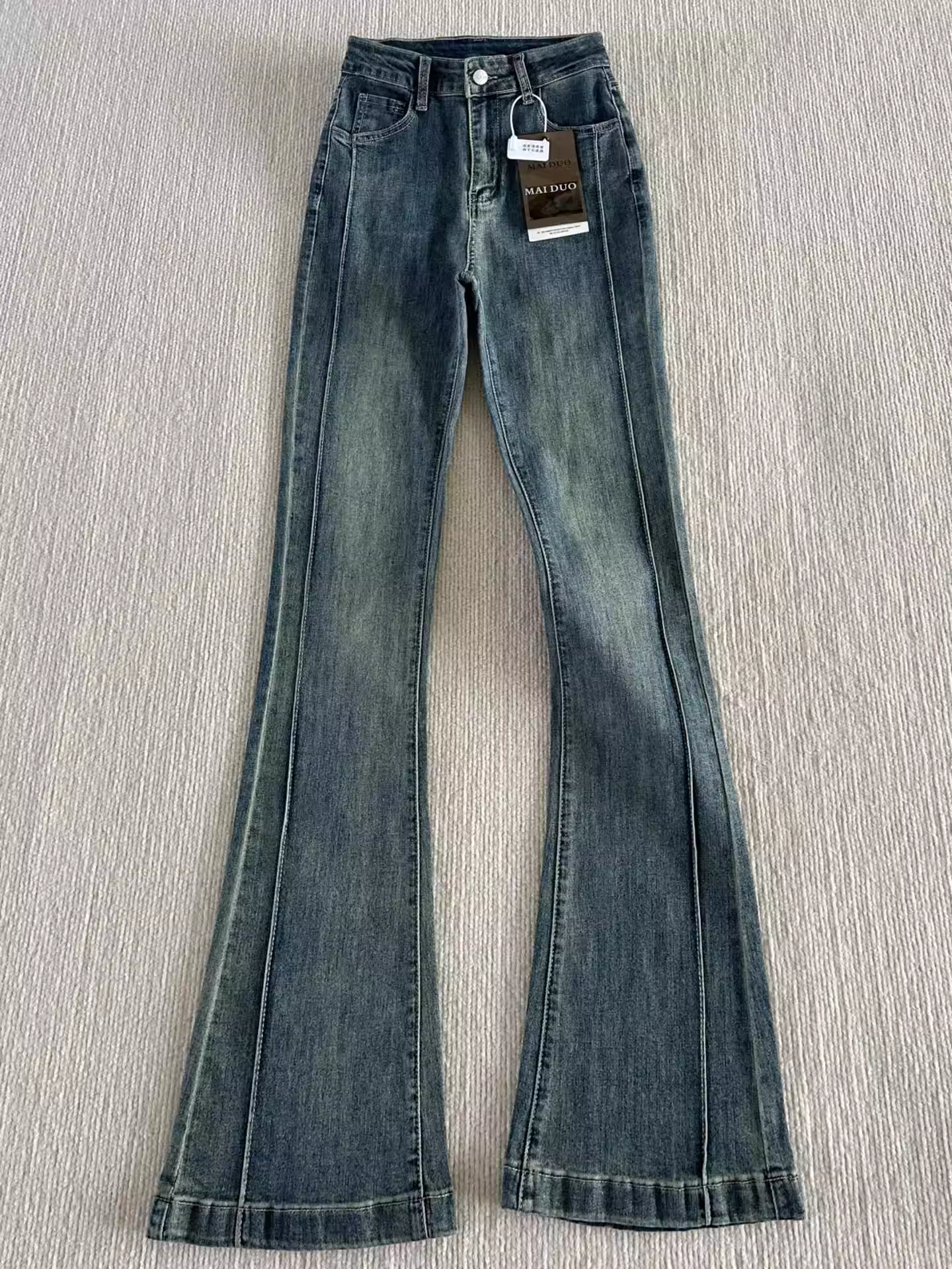 - Quần jean ống loe thẳng màu xanh retro kiểu Mỹ dành cho nữ, phong cách mùa thu mới, cỡ lớn, cạp cao, co giãn, quần ống loe tôn dáng.