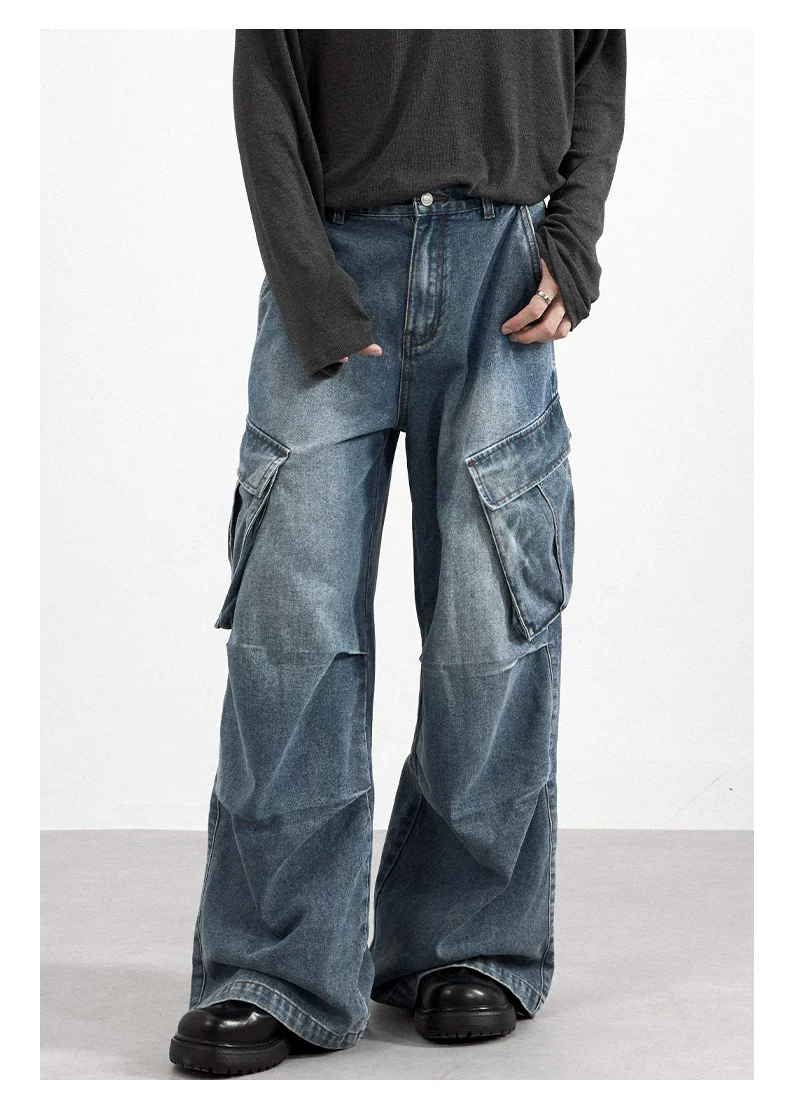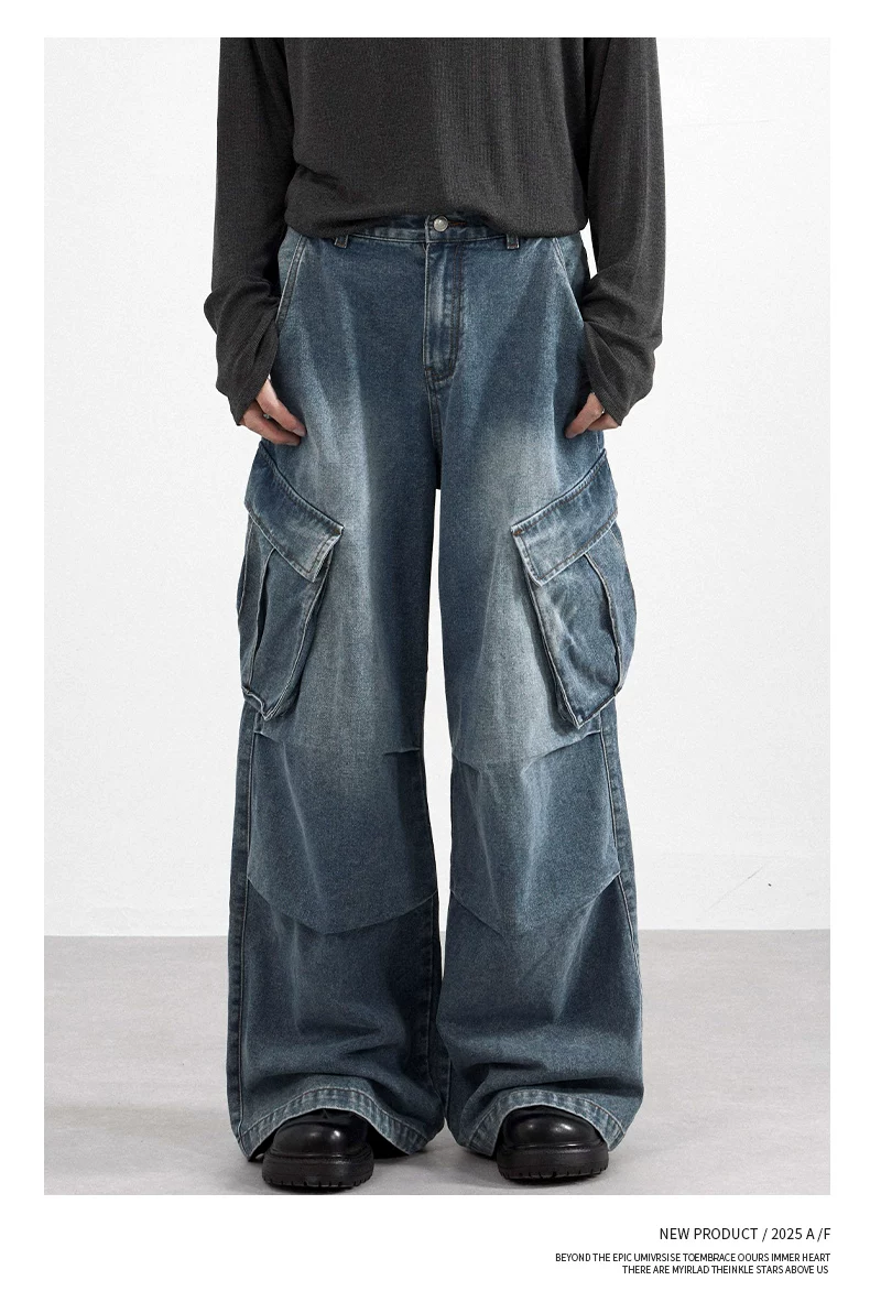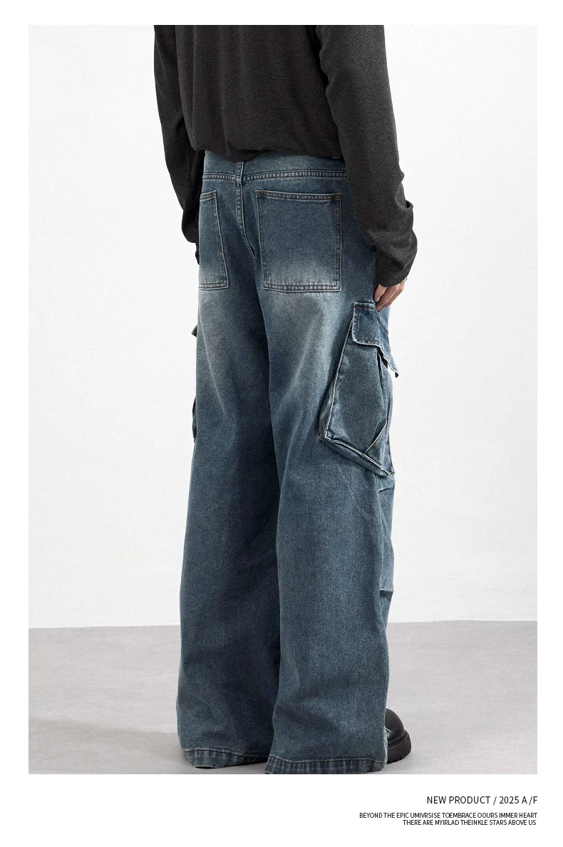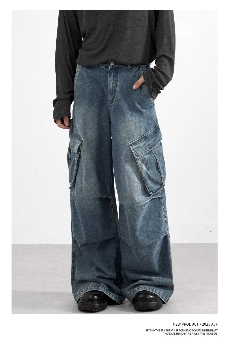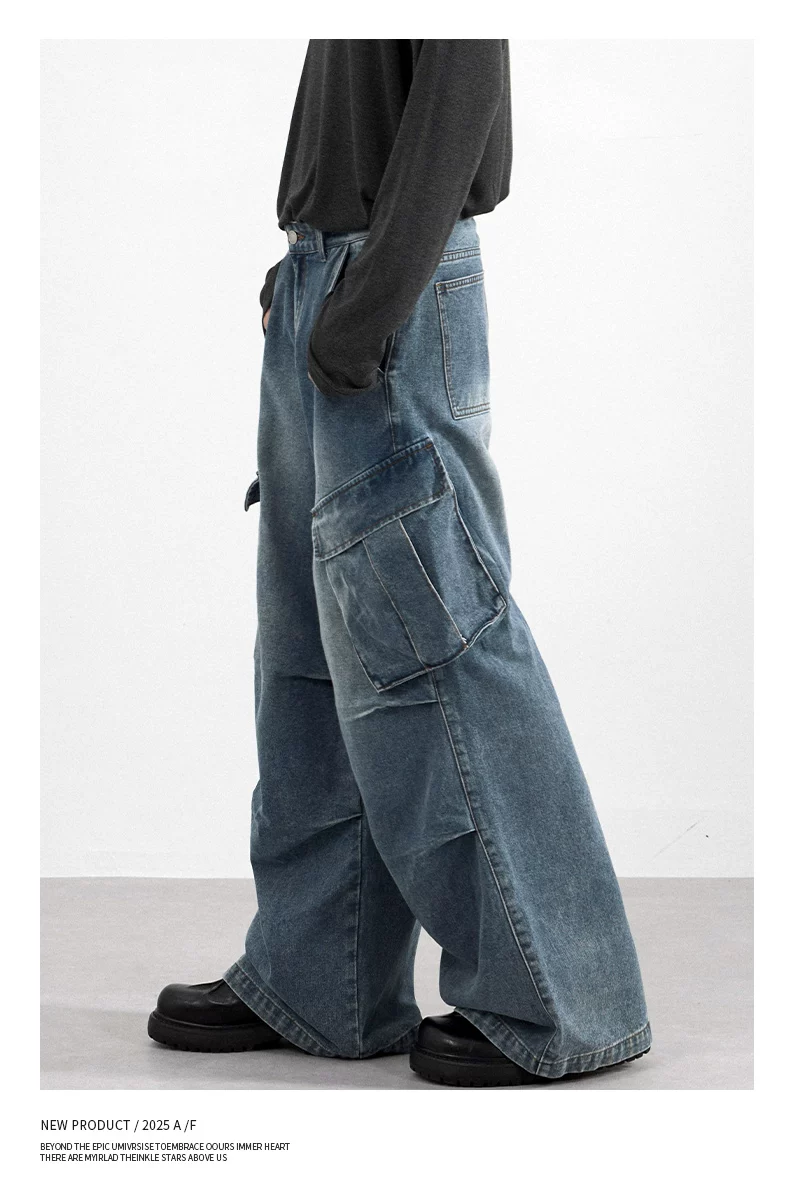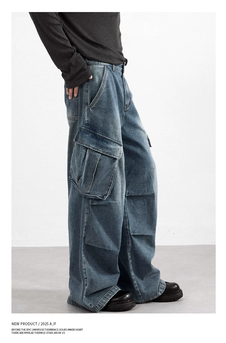 Quần jean thẳng dáng rộng OMZM dành cho nam, kiểu mới mùa đông 2025, quần công sở cao cấp cá tính, quần thường ngày kiểu vintage rách cá tính