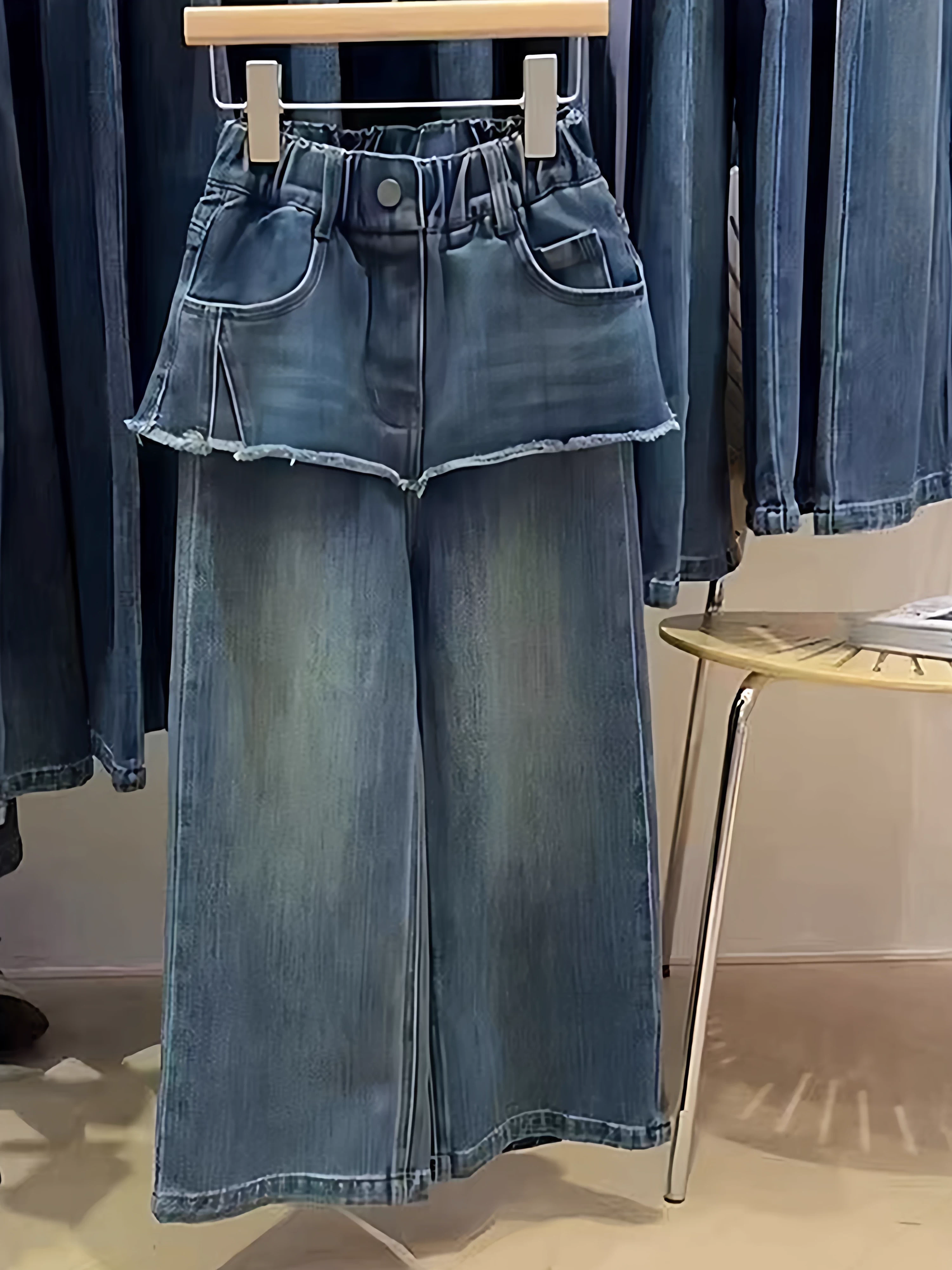- Quần jean thời trang nữ thiết kế giả hai mảnh, kiểu Hàn Quốc mới thu đông 2025, quần ống rộng hợp xu hướng dành cho trẻ lớn.