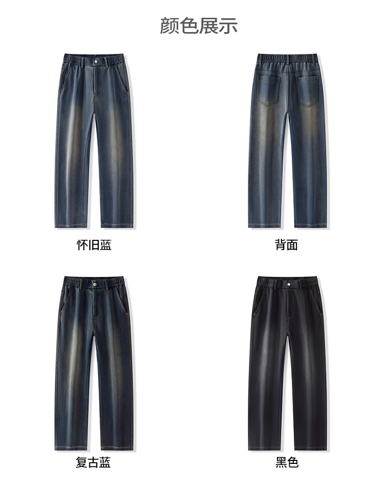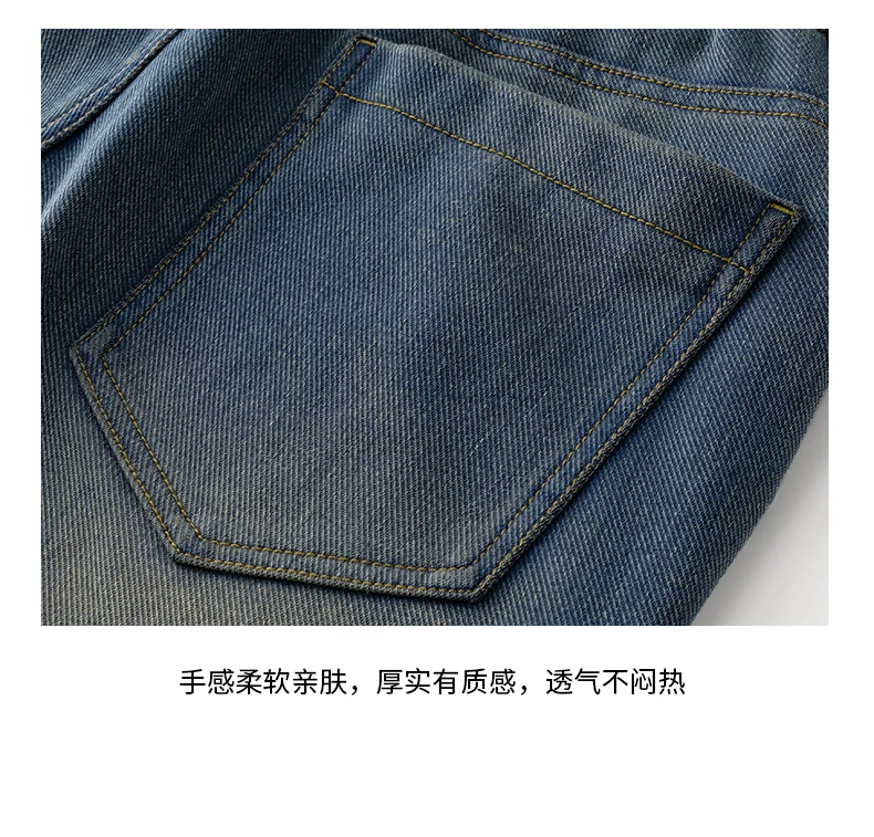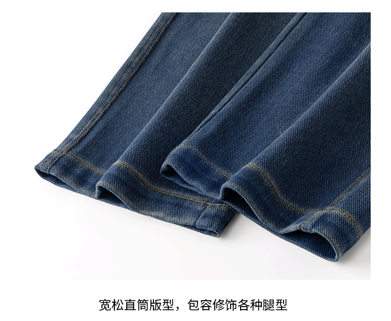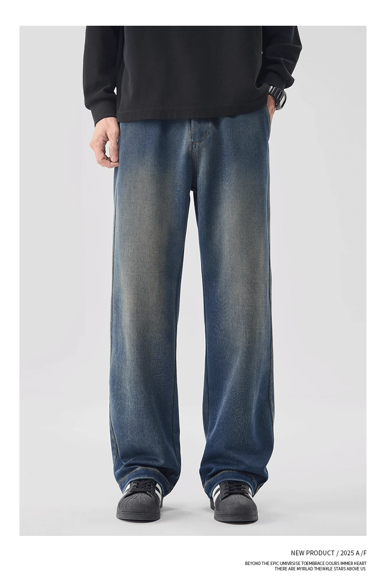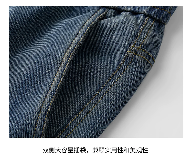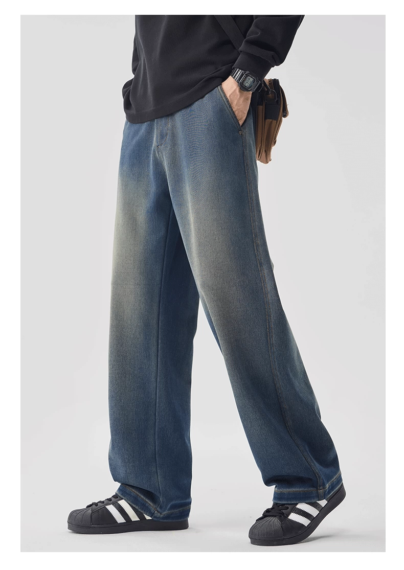 - Quần jean xanh cổ điển OMZM dành cho nam, quần ống rộng dáng rộng mùa thu đông, quần công sở cổ điển giặt nặng kiểu Mỹ