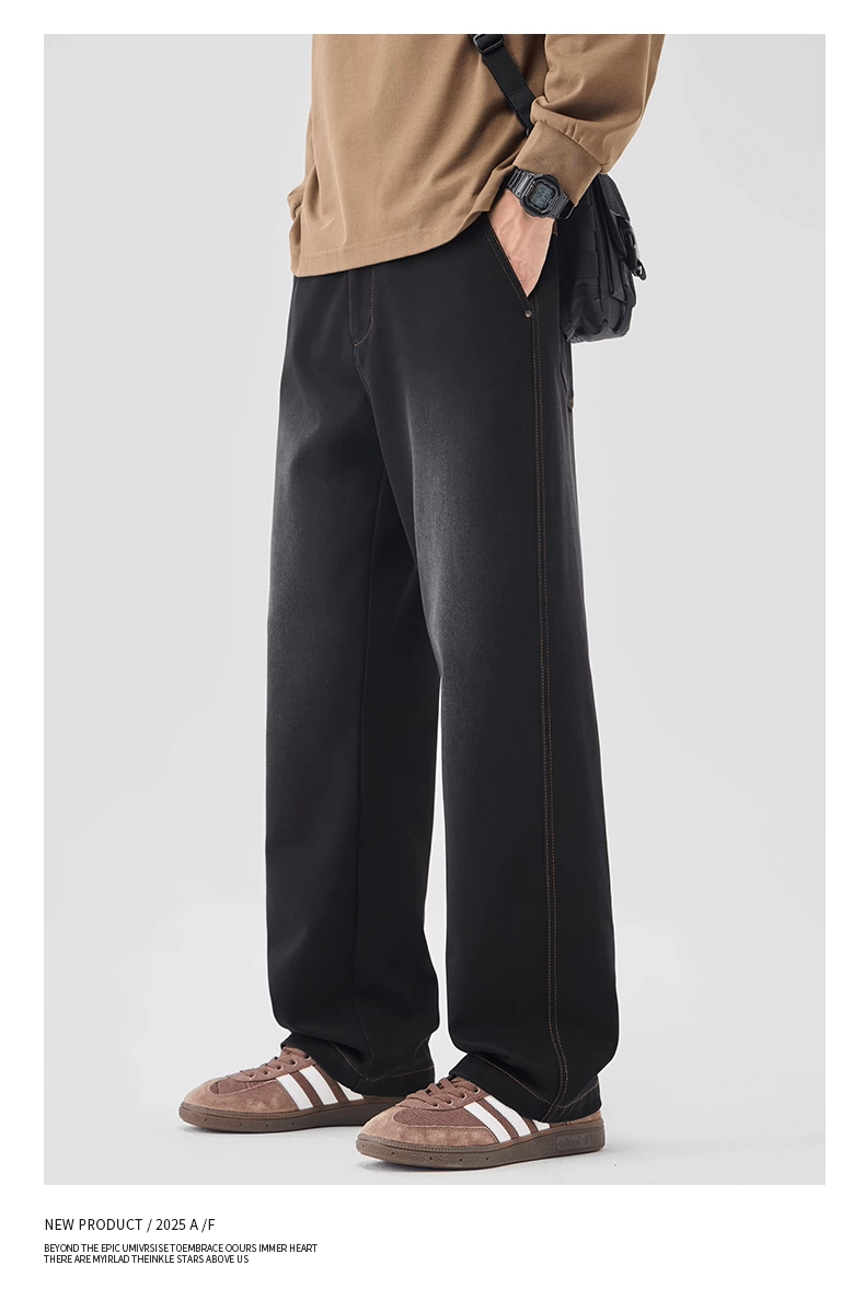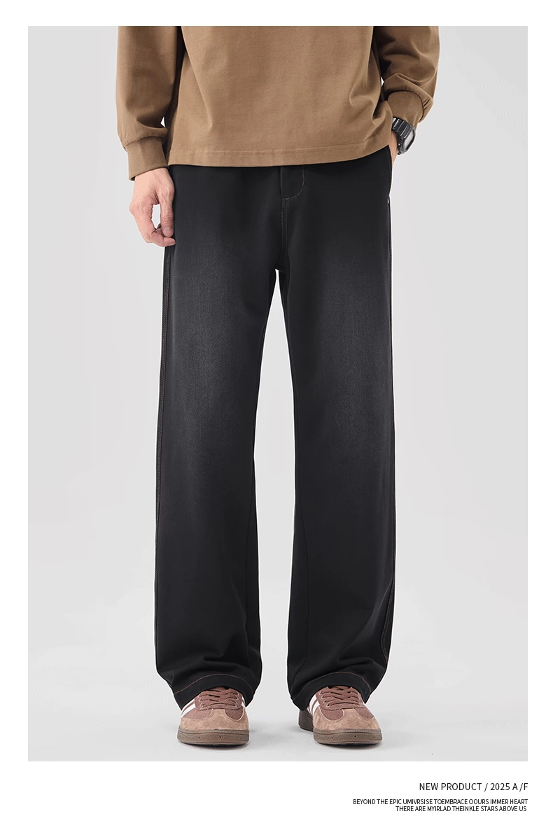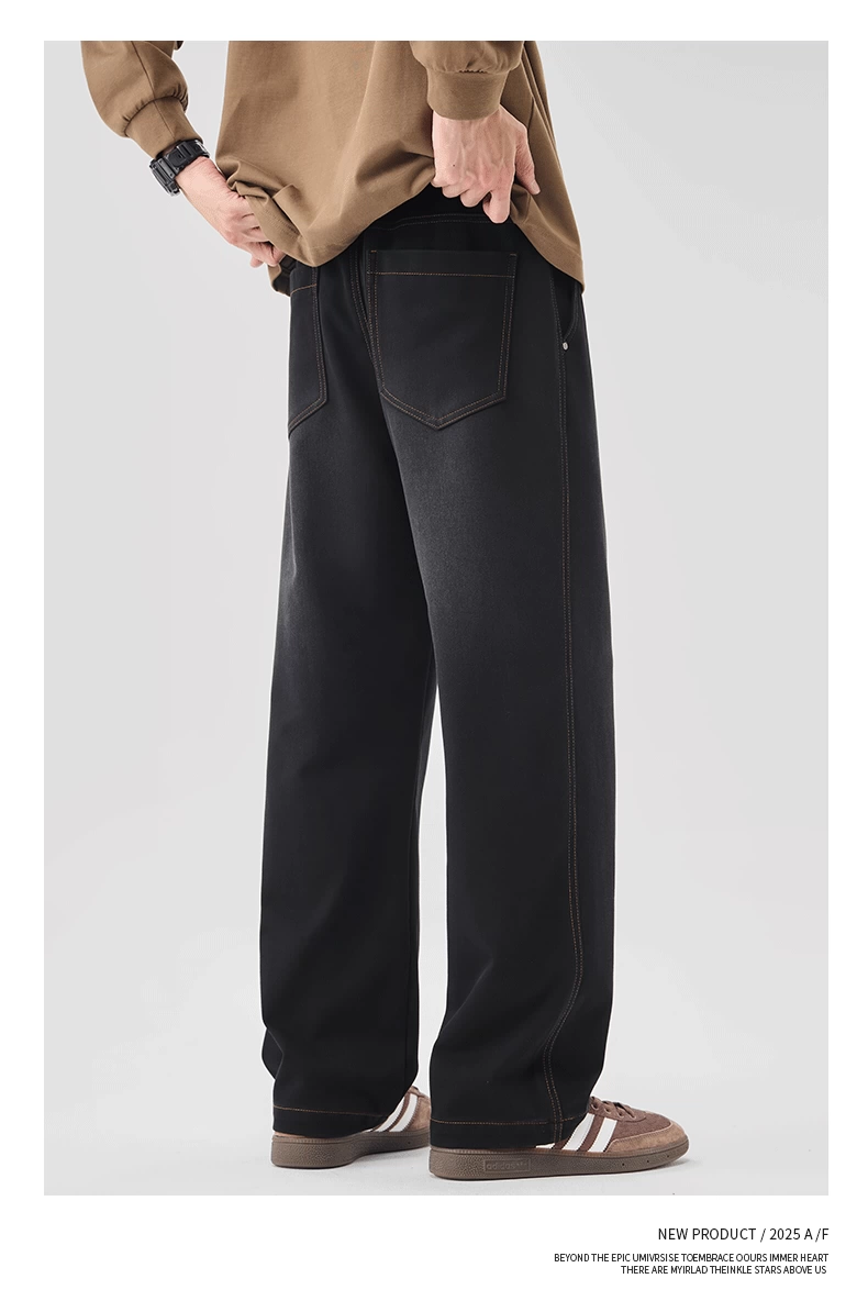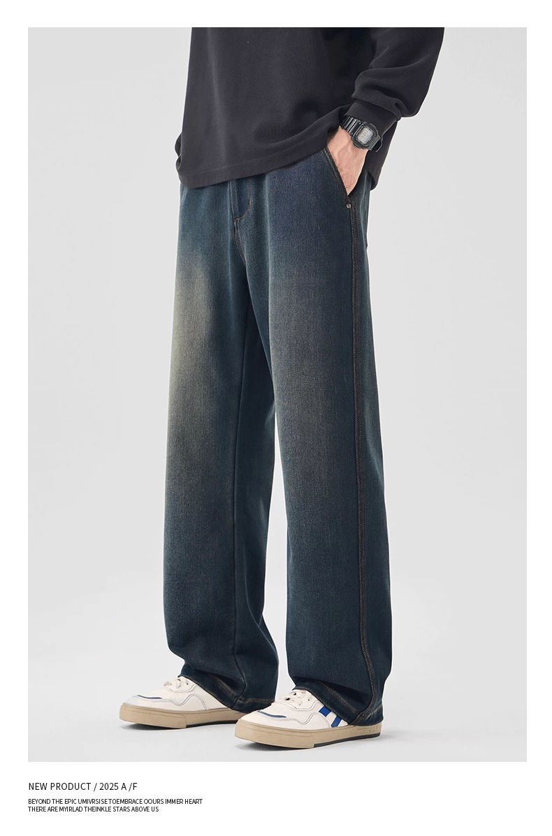 Quần jean xanh cổ điển OMZM dành cho nam, quần ống rộng dáng rộng mùa thu đông, quần công sở cổ điển giặt nặng kiểu Mỹ