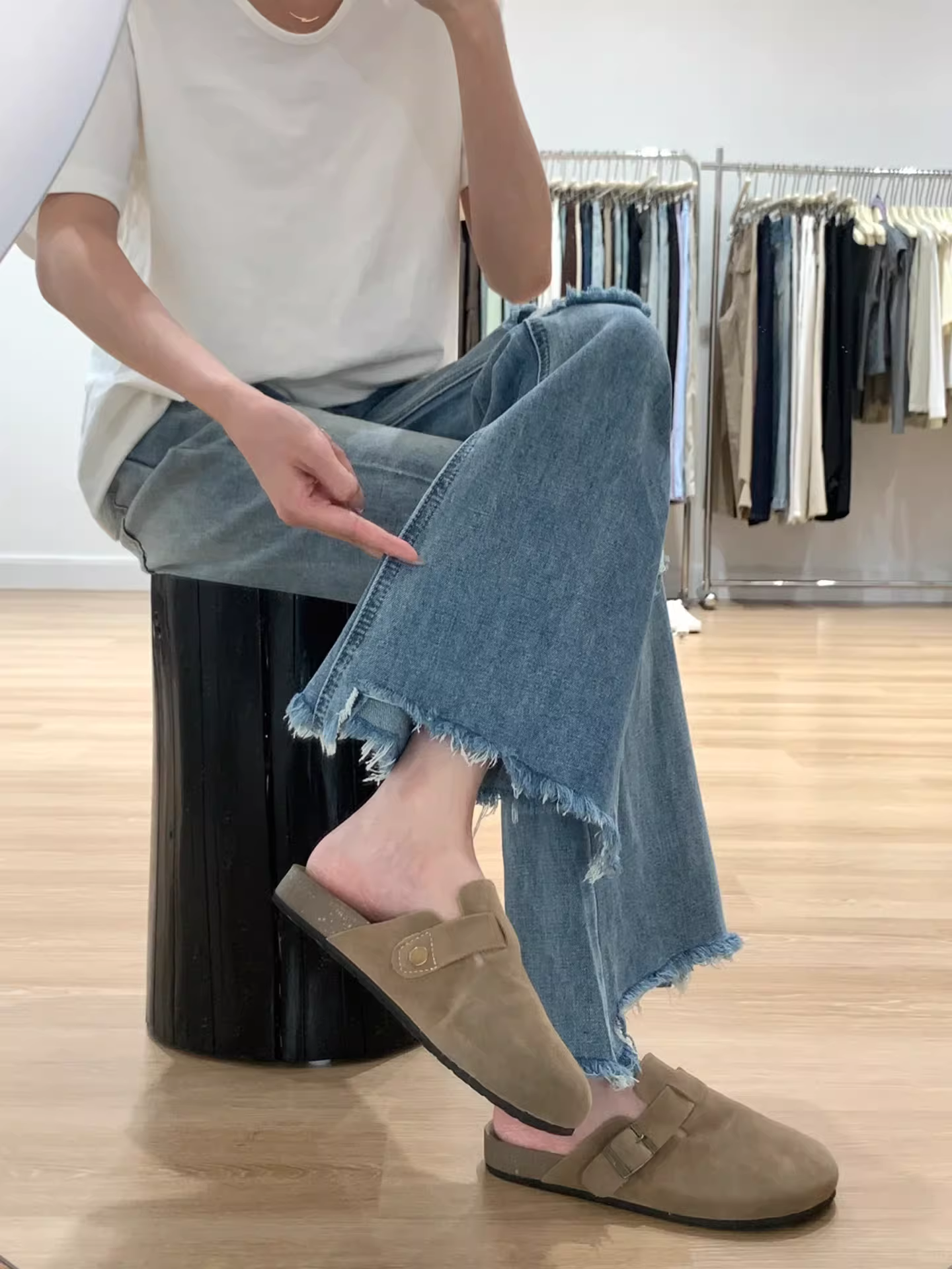- Quần jean xé rách dáng loe cho nữ, kiểu mới mùa hè, size lớn, lưng cao, tôn dáng, dành cho người có thân hình quả lê, viền rách, quần ống loe