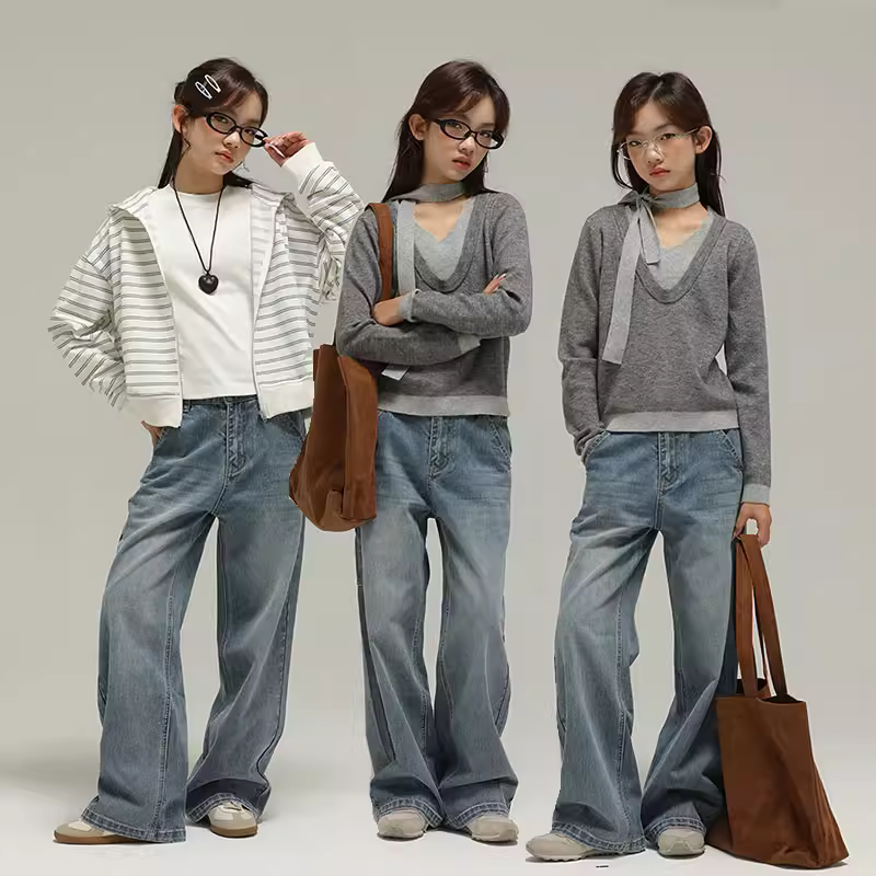 - Quần jean xuân thu cho bé gái 25 kiểu dáng mới quần ống rộng màu xanh dành cho trẻ lớn hơn, quần ống đứng dáng suông đa năng, giản dị, giảm béo