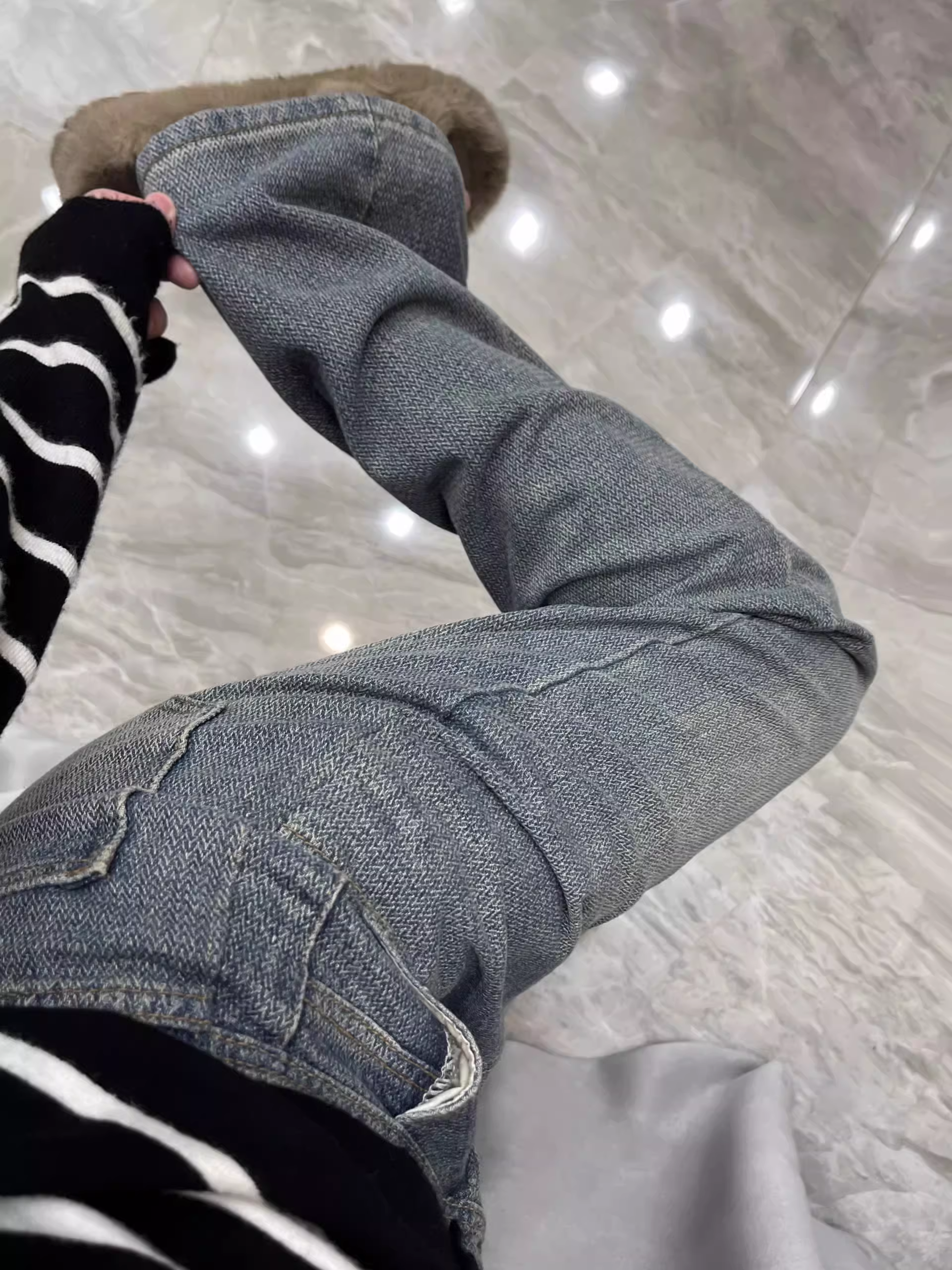 - Quần jeans ống rộng kiểu vintage họa tiết lúa mì dành cho nữ thu đông 2024, size lớn, cạp cao, dáng rộng, tôn dáng, dành cho người có thân hình quả lê, quần ống thẳng