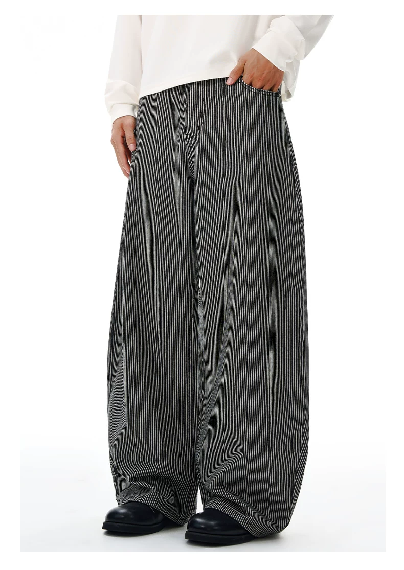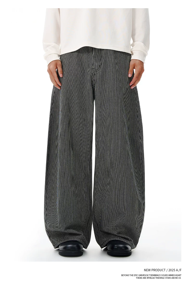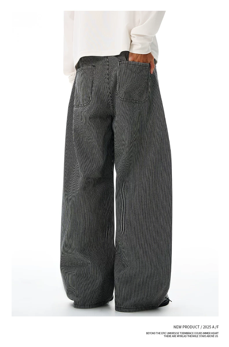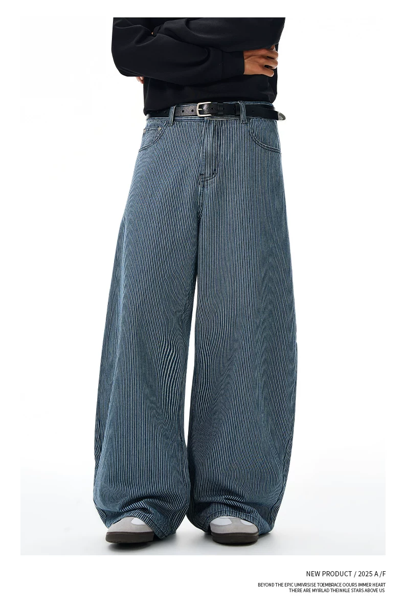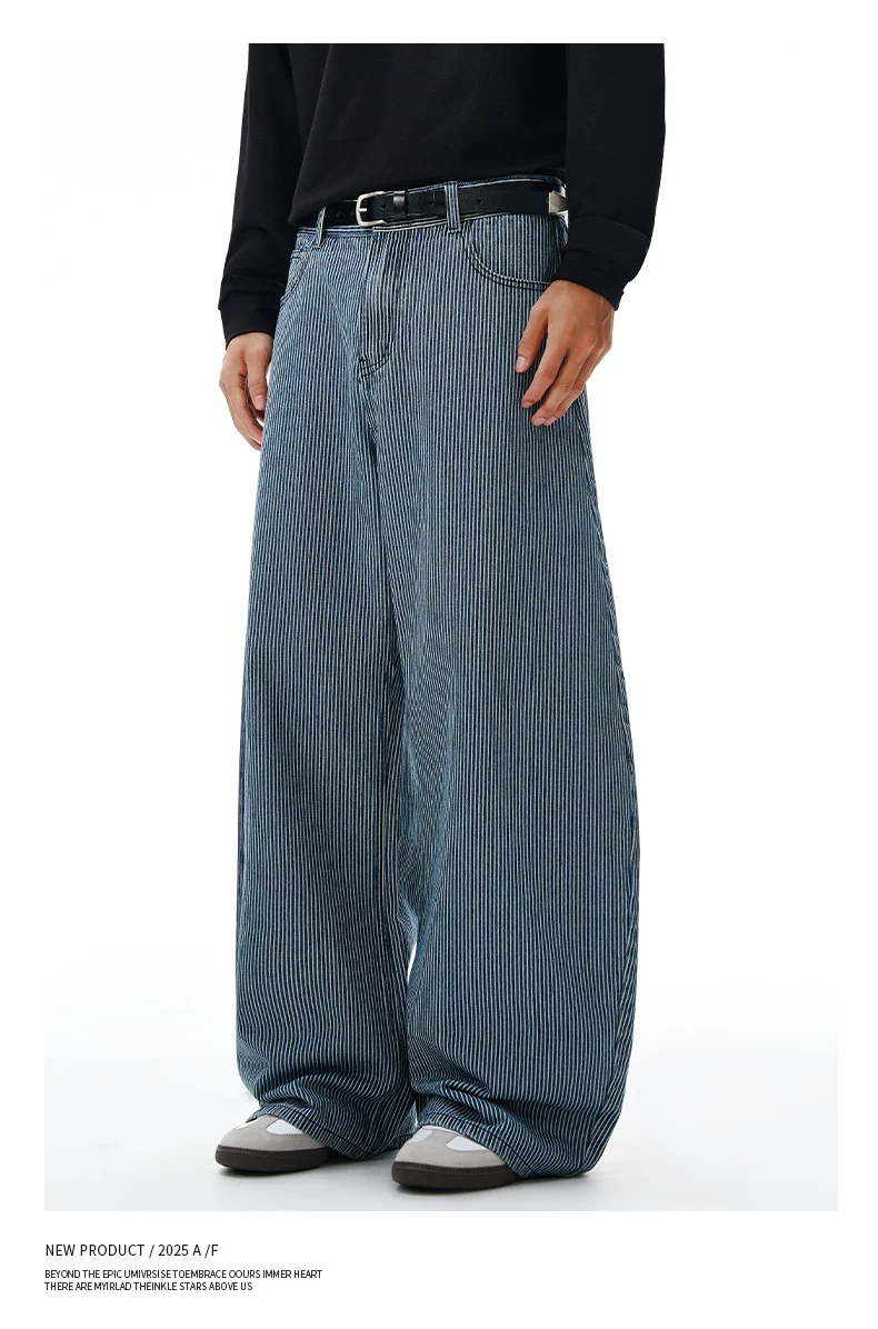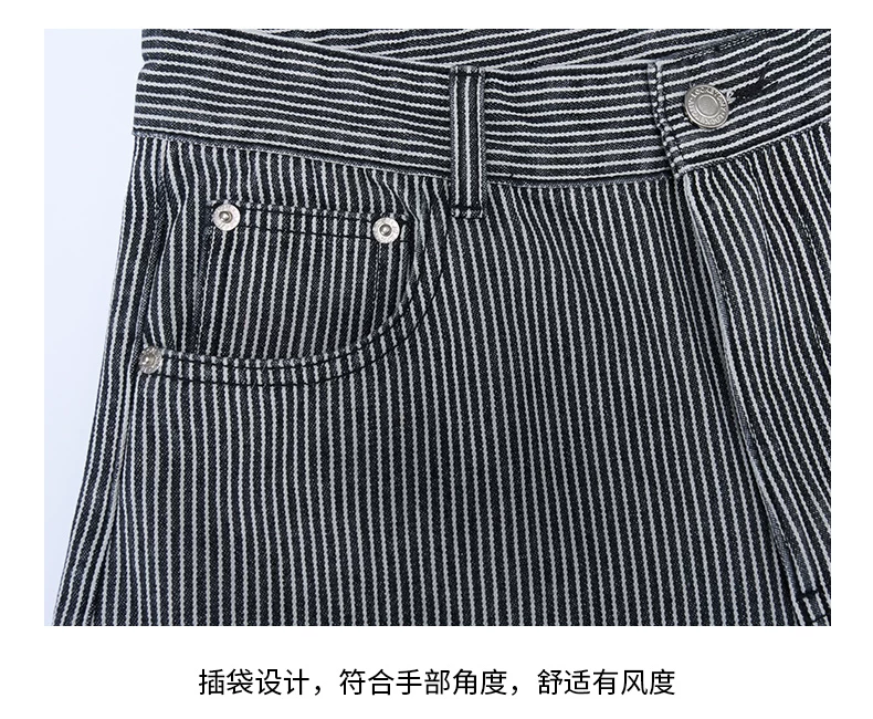 - Quần jeans sọc retro OMZM dành cho nam mùa đông 2025, kiểu dáng mới, rộng rãi, thẳng, thời thượng, phong cách đường phố Mỹ, kiểu quần lửng.
