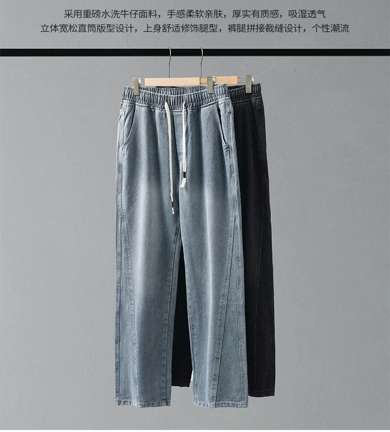 Quần jeans thẳng dáng rộng phong cách Mỹ OMZM dành cho nam, mẫu mới xuân 2025, kiểu vintage, cạp cao, dáng rộng, chất liệu mềm mại, phong cách thường ngày