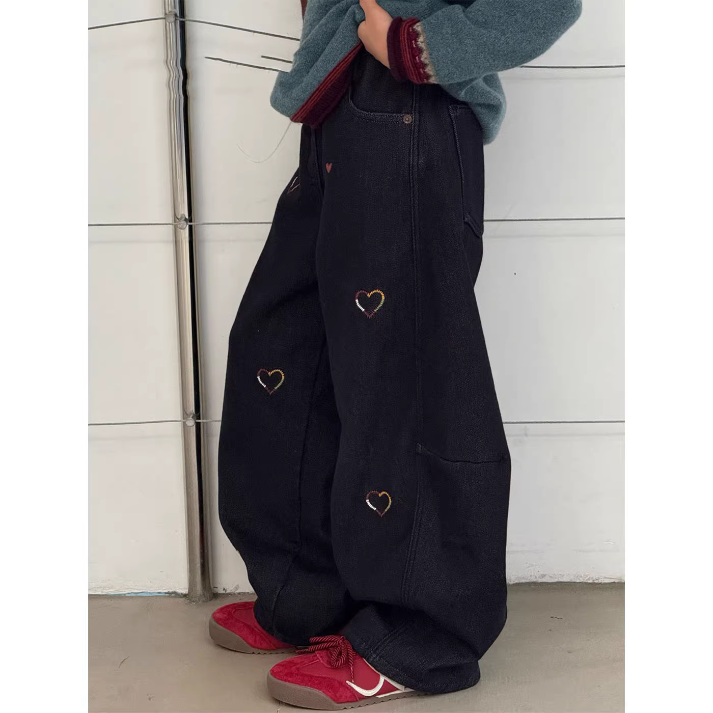 - Quần jeans thêu lót lông cừu thời trang trẻ em dành cho bé gái, quần ống rộng kiểu dáng thời trang, quần ống rộng dáng suông