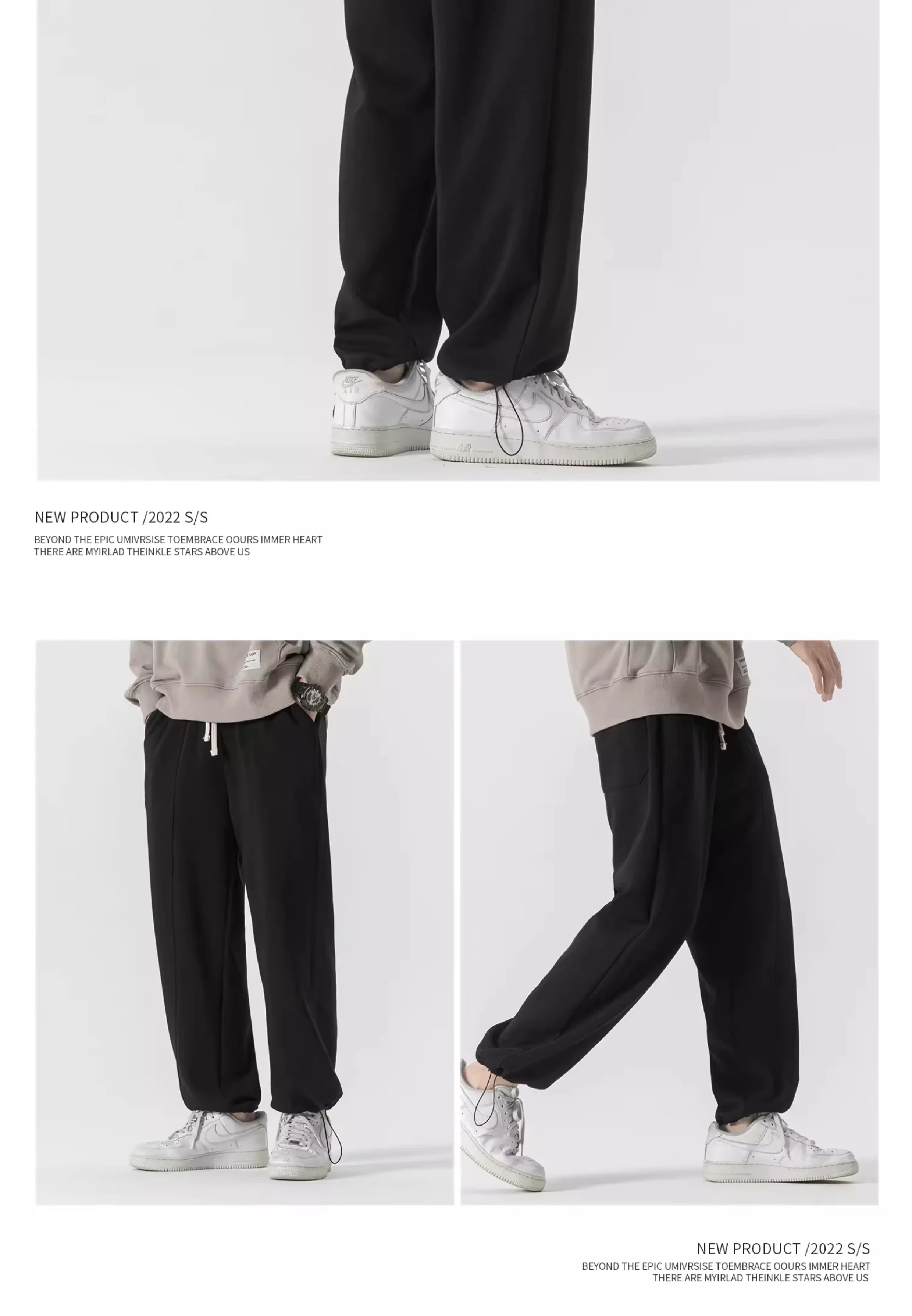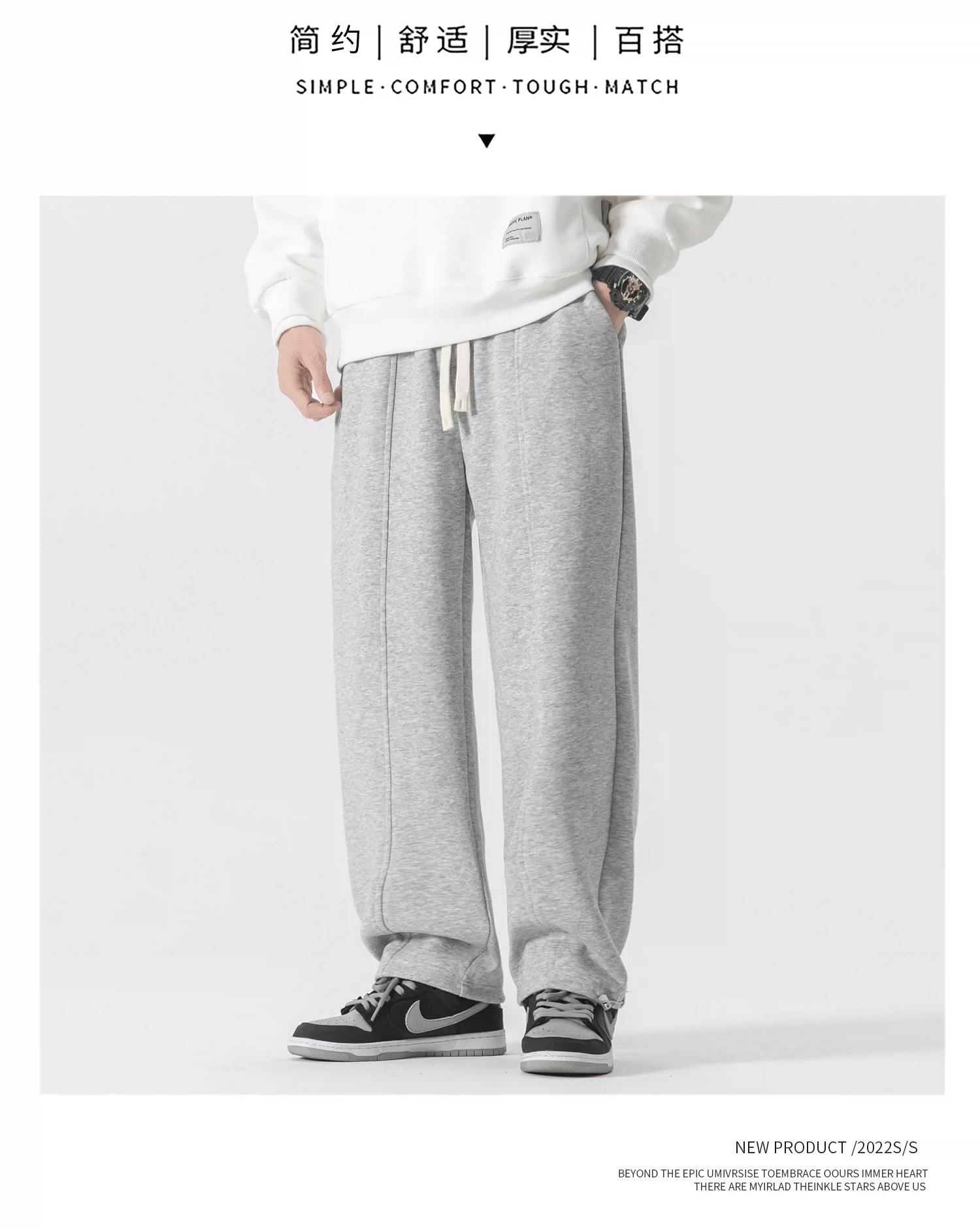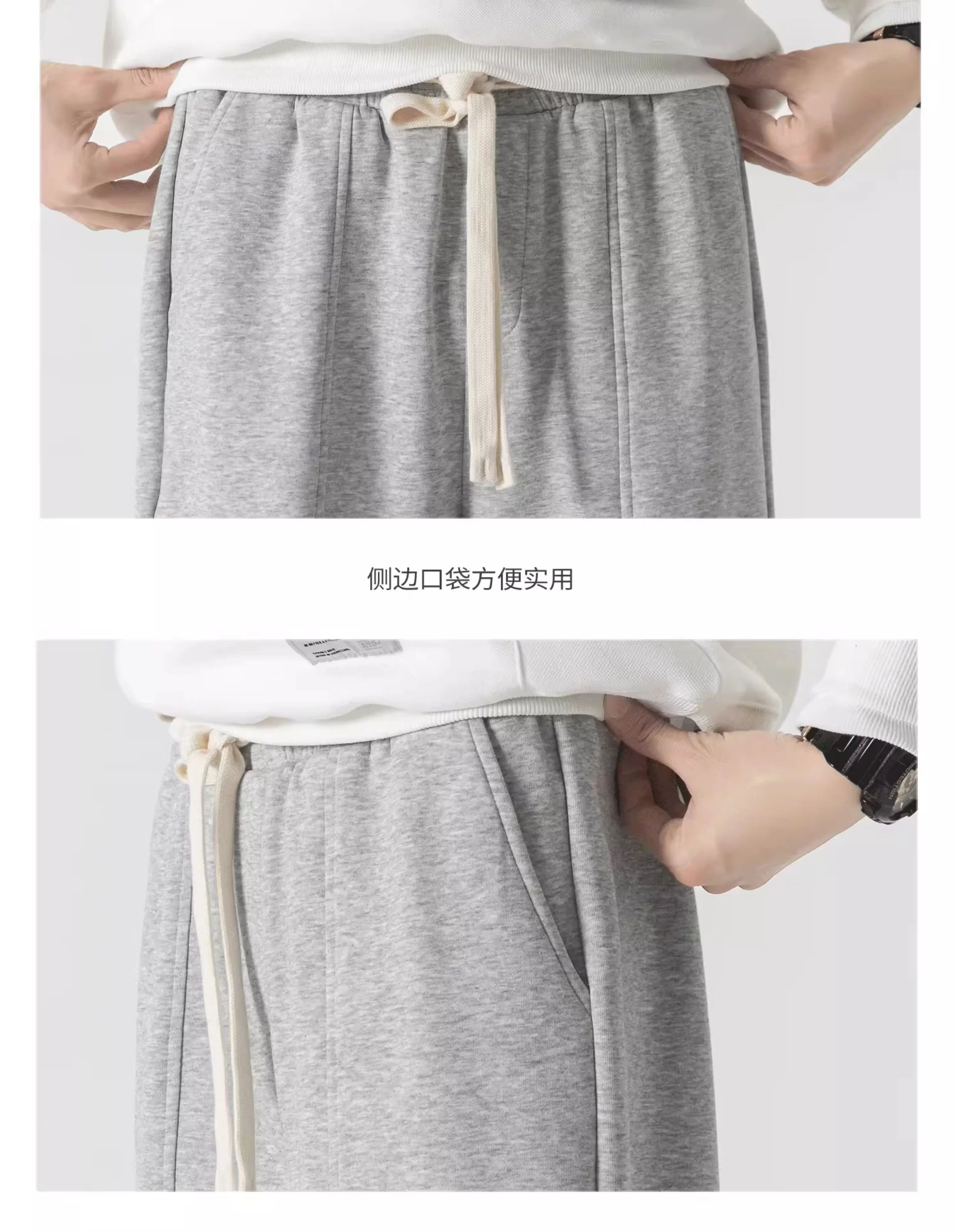 - Quần jogger có dây rút hạng nặng OMZM dành cho nam, quần dài dáng rộng phong cách Mỹ mùa xuân và mùa thu, quần thể thao màu xám