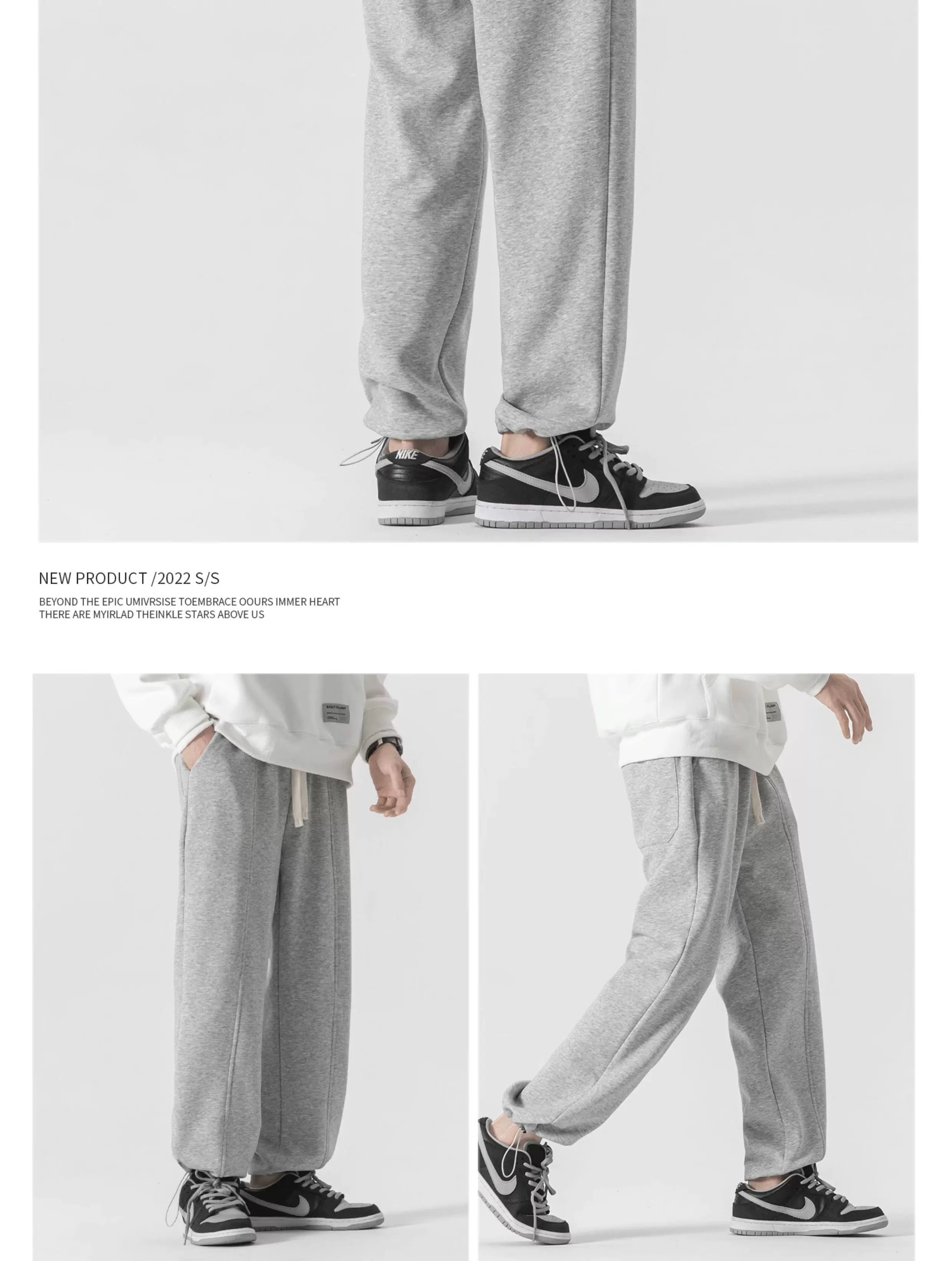 - Quần jogger có dây rút hạng nặng OMZM dành cho nam, quần ống rộng kiểu Mỹ mùa thu, quần thể thao màu xám thông thường dành cho bé trai