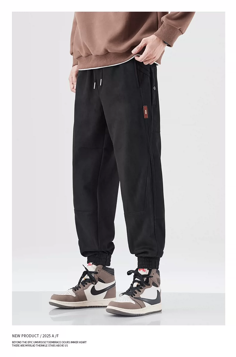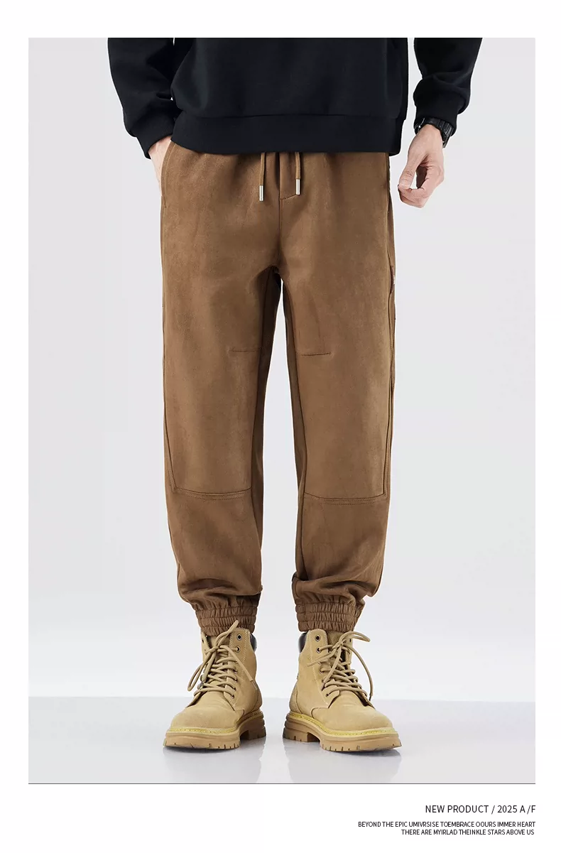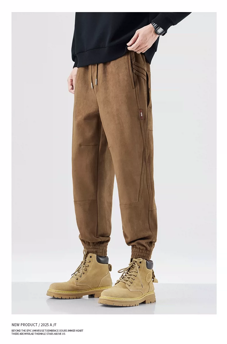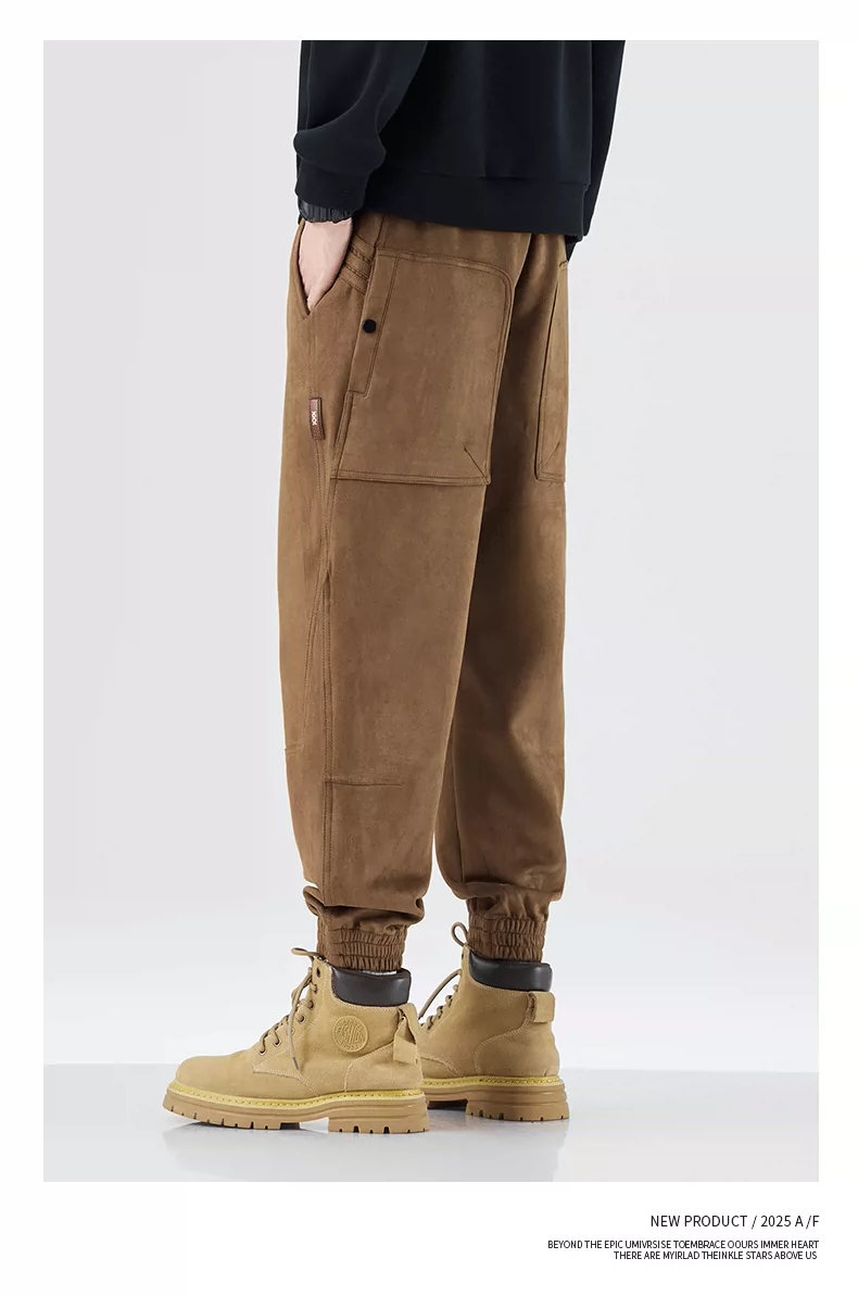 Quần jogger da lộn hạng nặng OMZM dành cho nam, quần dài thường ngày phối màu mùa thu, quần cargo đi bộ đường dài ngoài trời phong cách cổ điển
