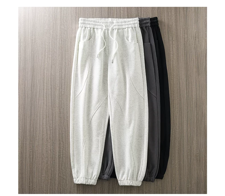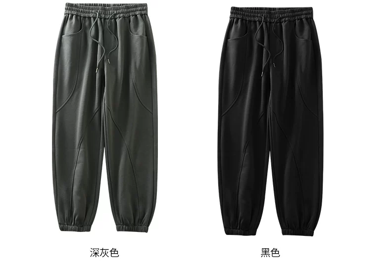 - Quần jogger hạng nặng kiểu Mỹ của OMZM dành cho nam, quần thể thao chắp vá hợp thời trang mùa thu, quần dài màu xám dáng rộng và đa năng