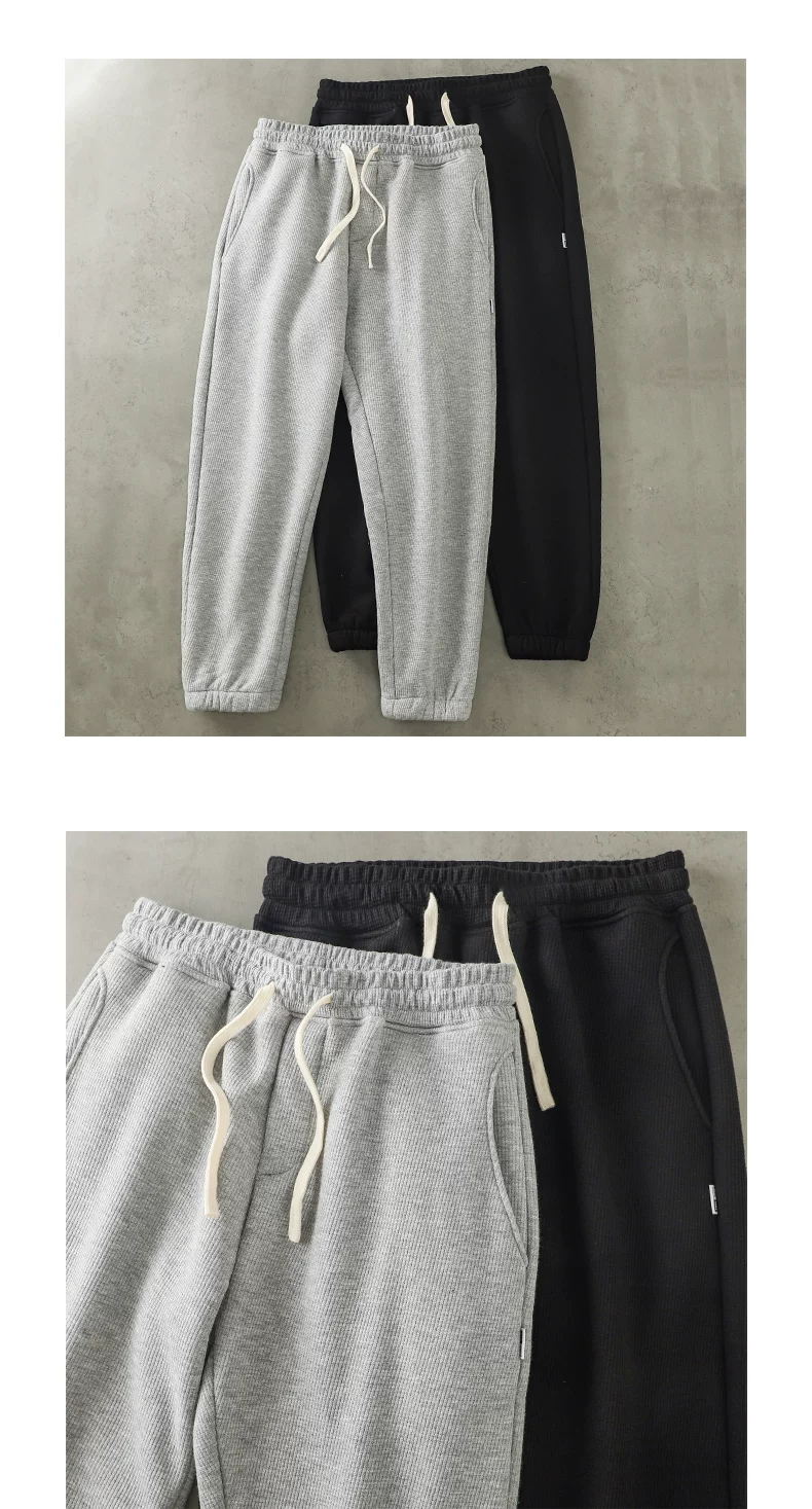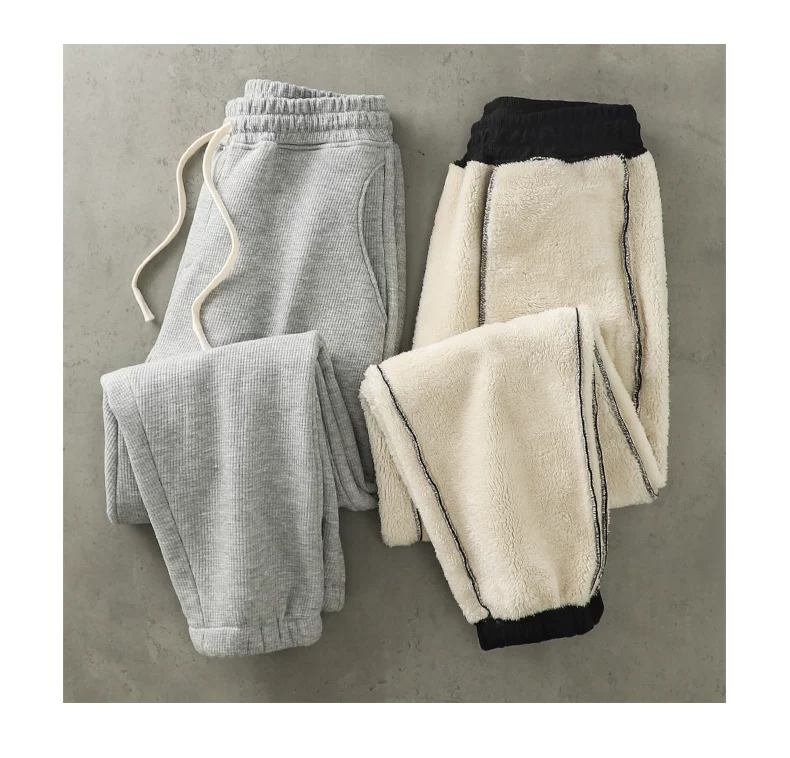 - Quần jogger nam chất liệu lông cừu dày dặn kiểu Mỹ 400G, mùa thu đông, lót lông dày, kiểu dệt tổ ong, quần thể thao thường ngày