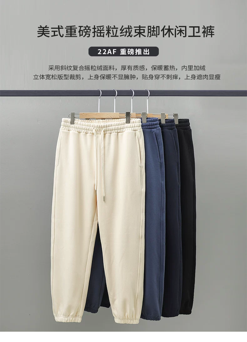 - Quần jogger nỉ dày dặn kiểu Mỹ 360G dành cho nam, mùa thu đông, lót lông cừu và dày dặn, phong cách đường phố, quần thường ngày.