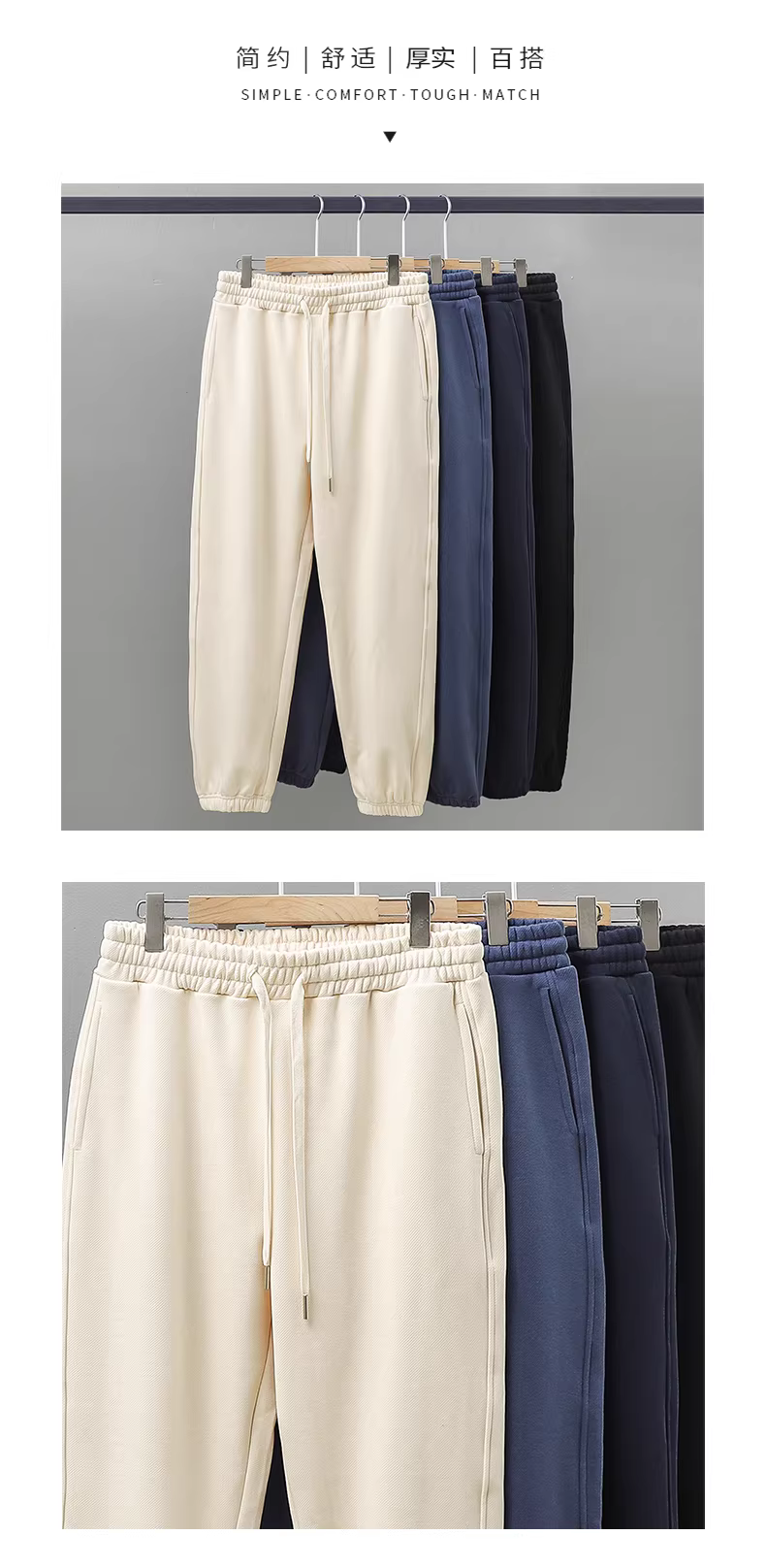 Quần jogger nỉ dày kiểu Mỹ dành cho nam, mùa thu đông, lót lông cừu, dày dặn, quần thể thao rộng rãi, phong cách thường ngày.