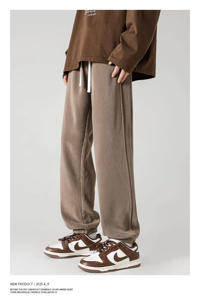 Quần jogger nỉ hai mặt dày dặn dành cho nam, mùa thu đông, lót lông cừu, dày dặn, ấm áp, quần thể thao dáng thẳng, phong cách thường ngày.