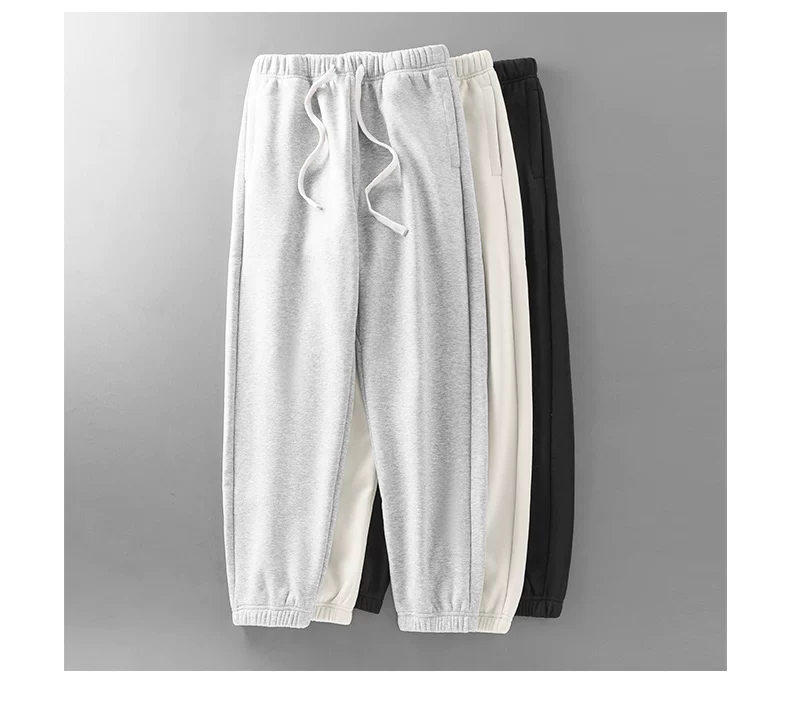- Quần jogger nỉ hạng nặng OMZM500G dành cho nam, phong cách Mỹ mùa thu đông, quần dài lót lông và dày dặn, quần thể thao màu xám.