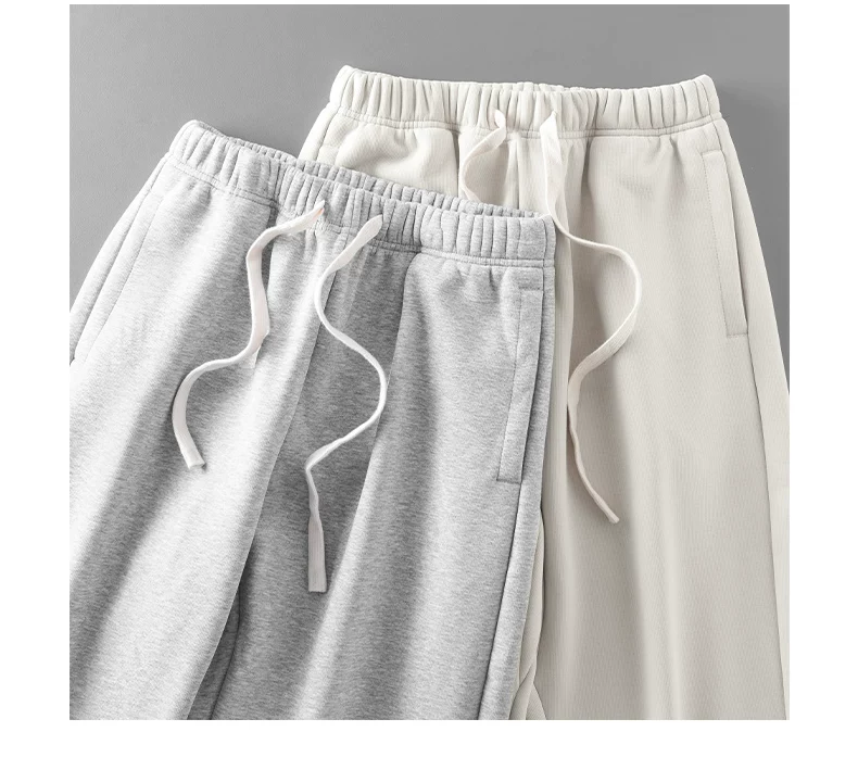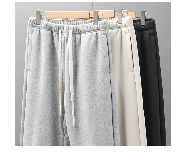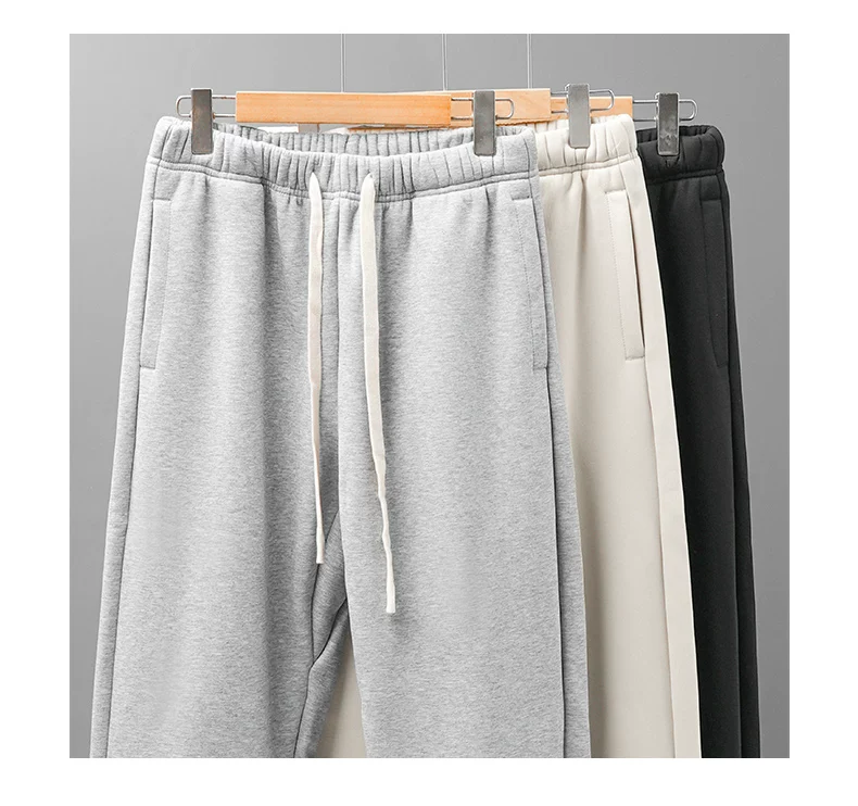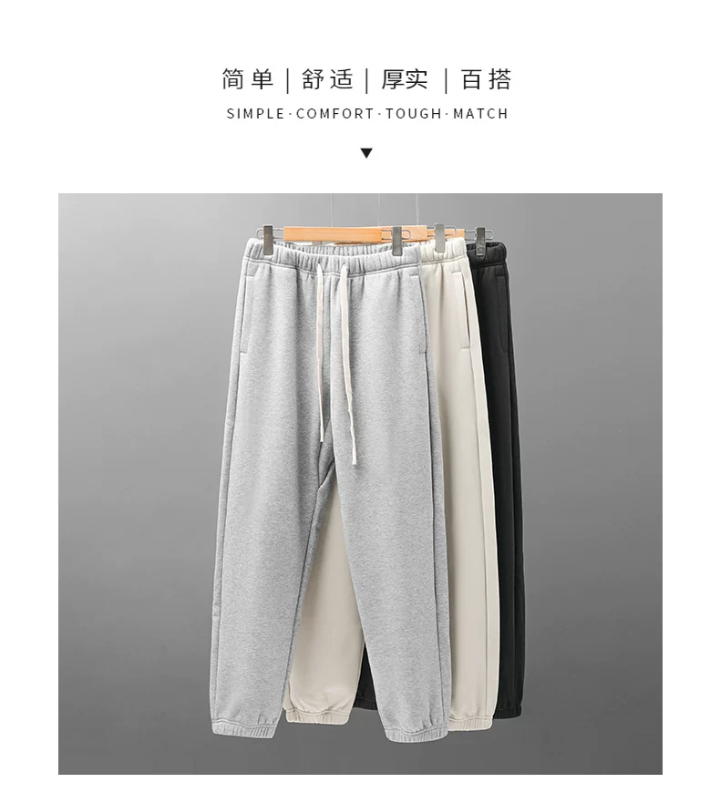 Quần jogger nỉ hạng nặng OMZM500G dành cho nam, phong cách Mỹ mùa thu đông, quần dài lót lông và dày dặn, quần thể thao màu xám.