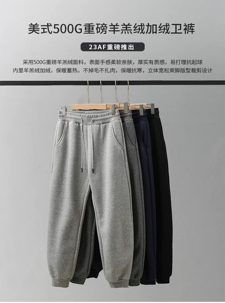 Quần len cừu OMZM dành cho nam, quần cotton dày dặn, lót lông cừu mùa đông, quần cotton dày dặn, ấm áp, quần jogger dáng rộng phong cách Mỹ.