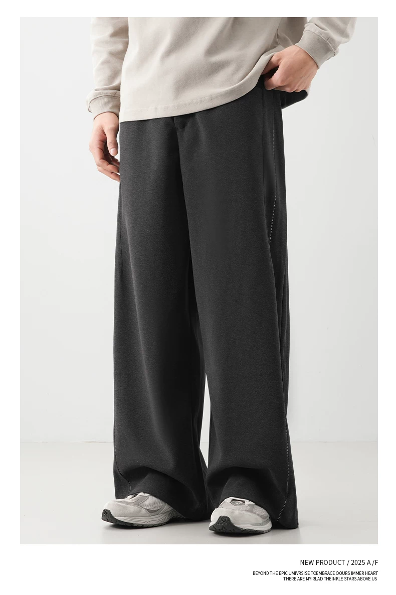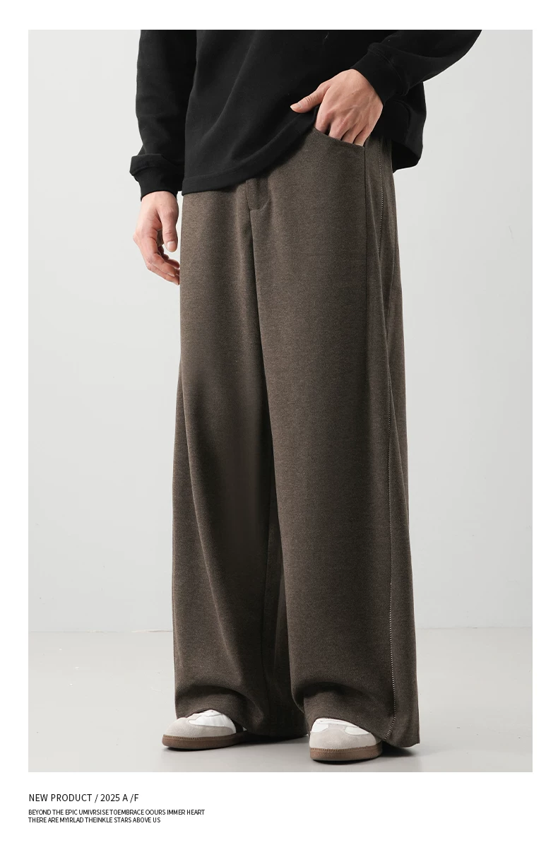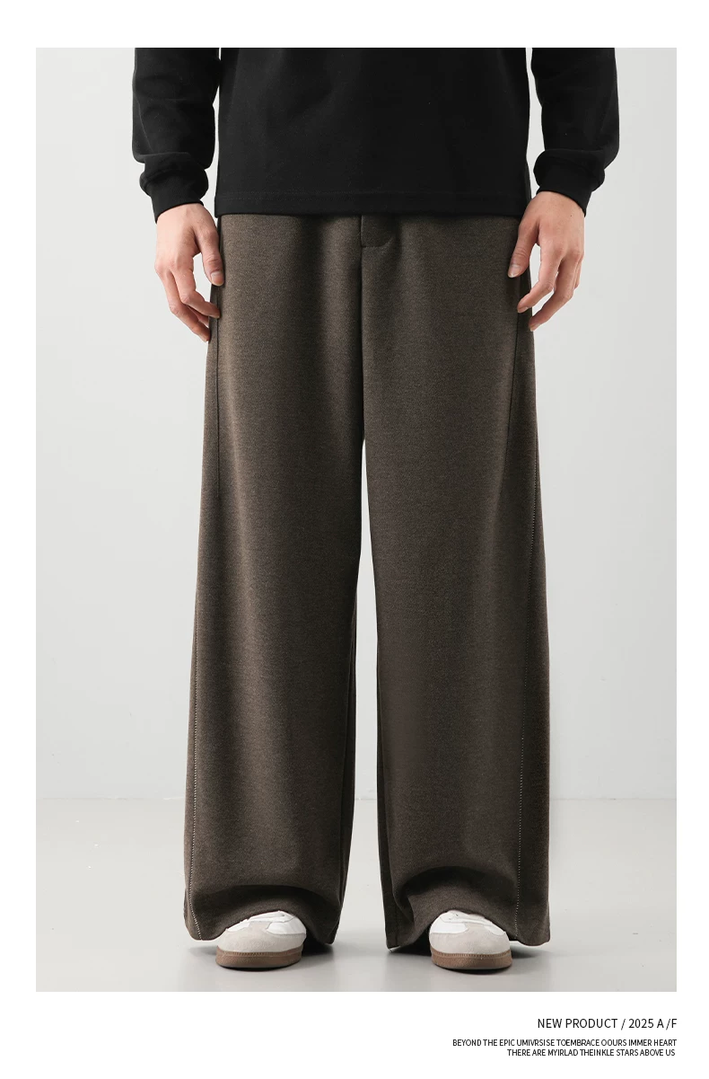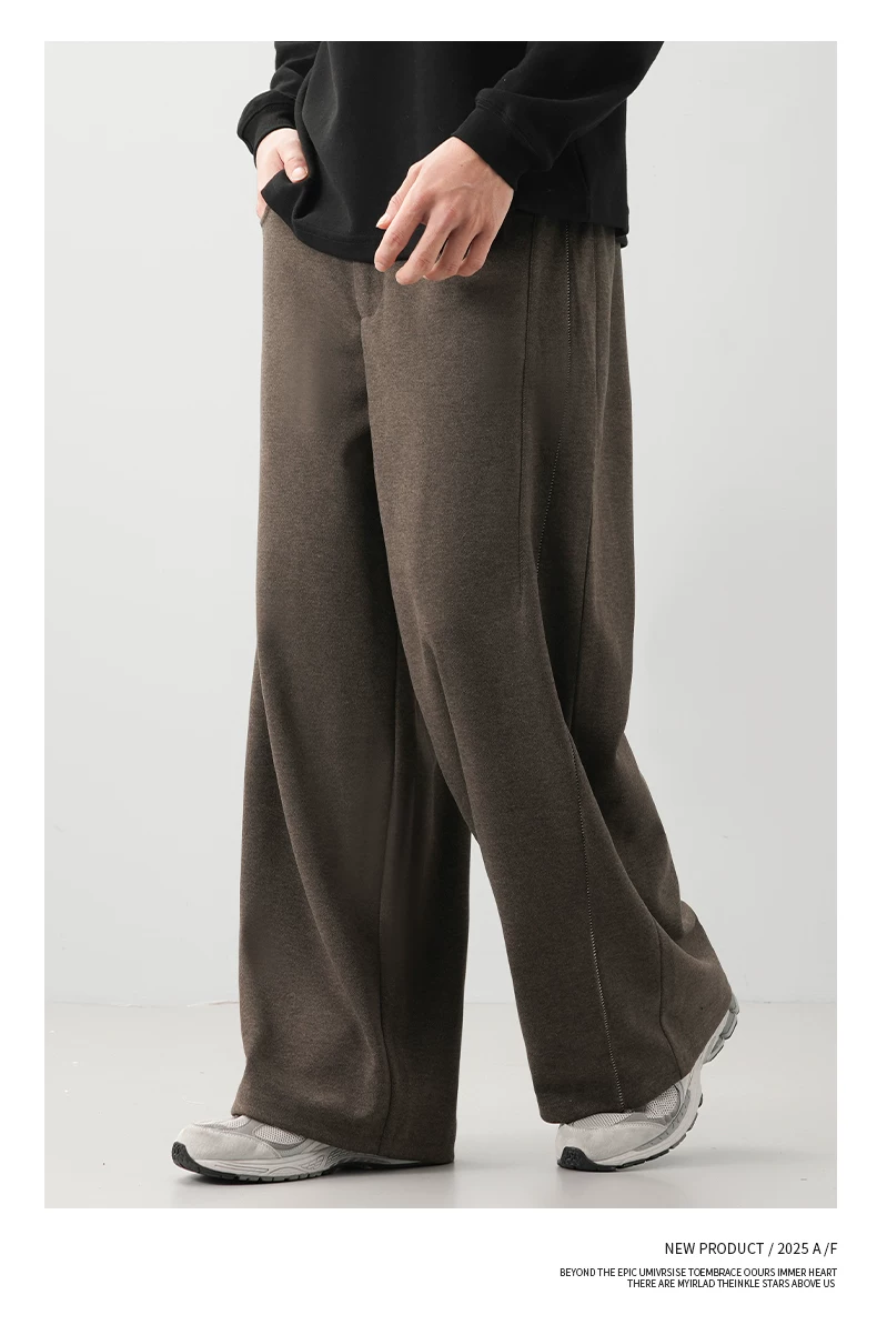- Quần len dày kiểu Mỹ OMZM dành cho nam, quần ống rộng dày dặn ấm áp mùa thu đông, quần ống rộng dáng thẳng dáng rộng, quần thường ngày.