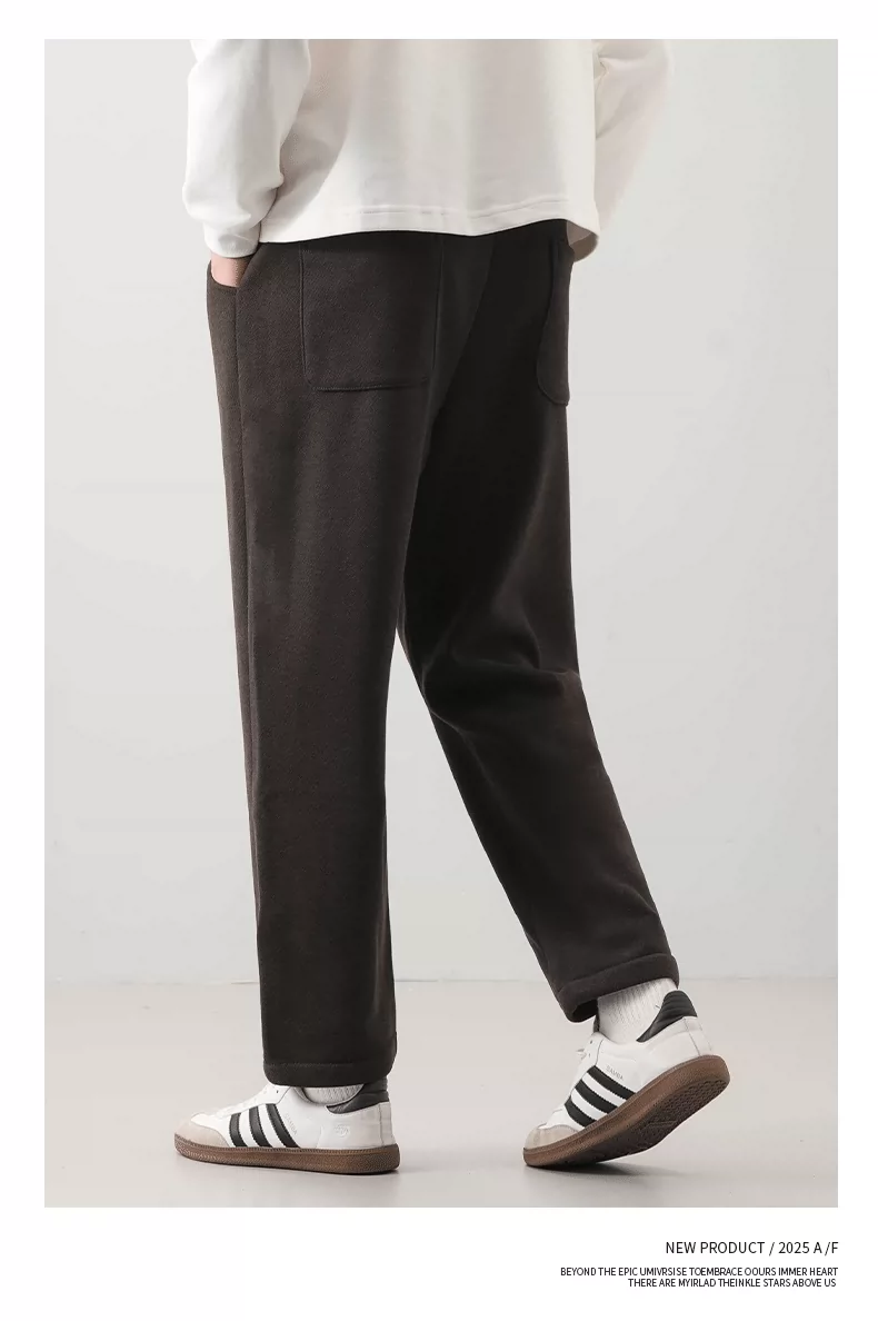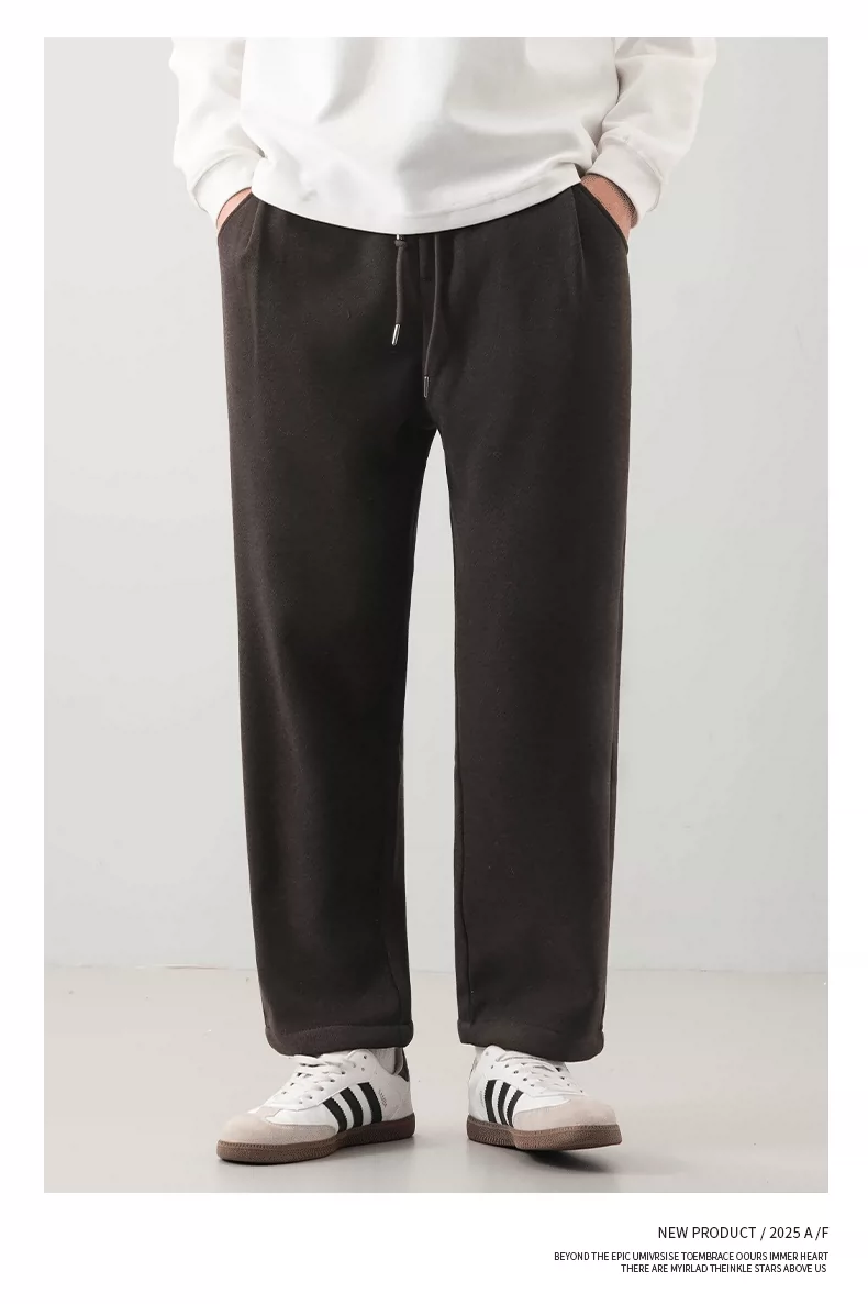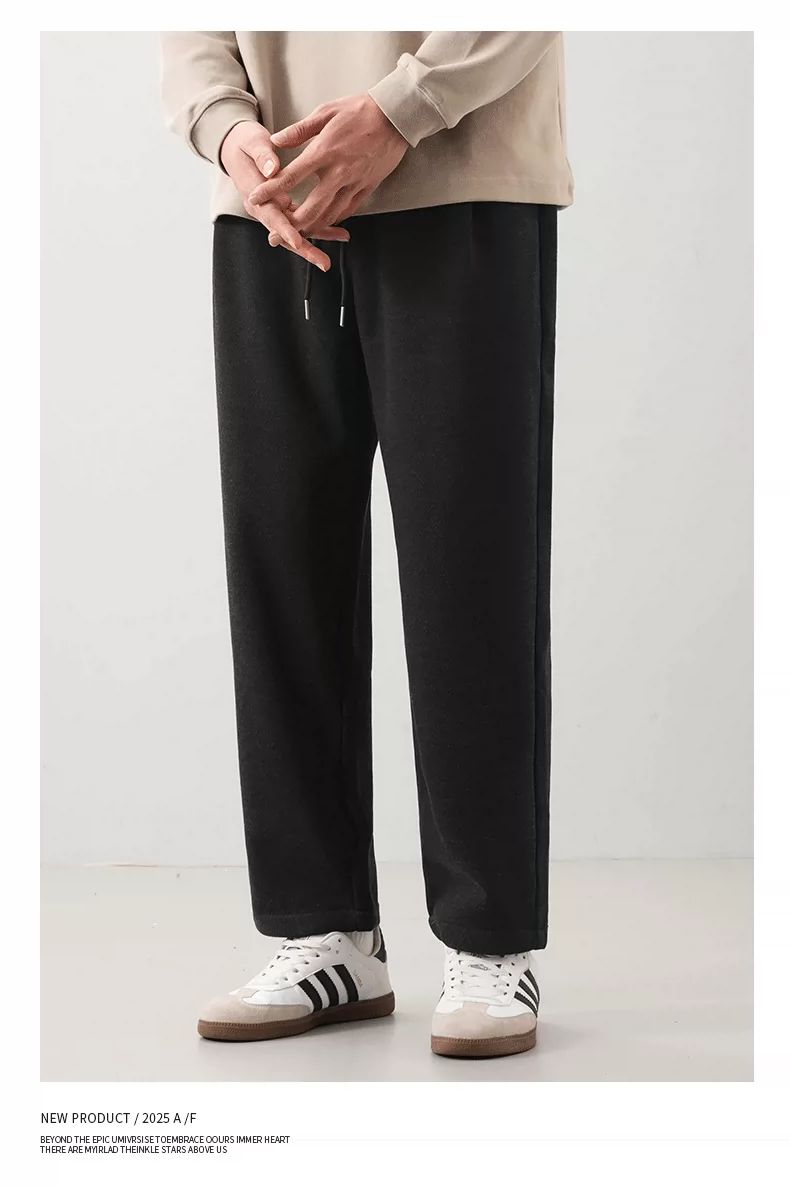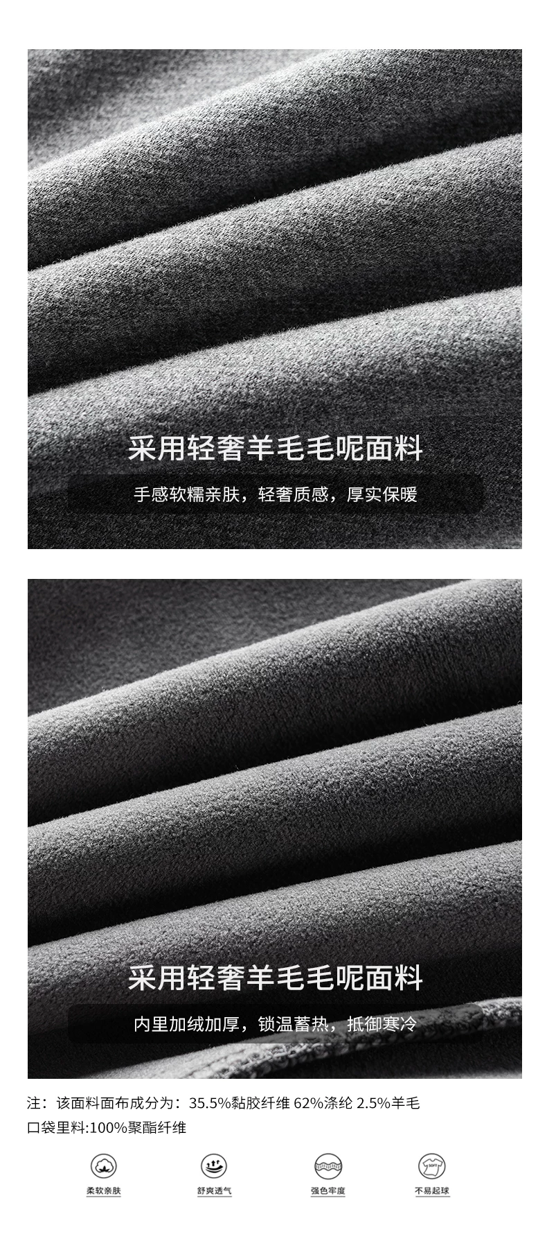 - Quần len dày OMZM dành cho nam, phong cách cổ điển mùa đông, lót lông cừu, quần ấm áp thường ngày, quần ống đứng rộng thùng thình