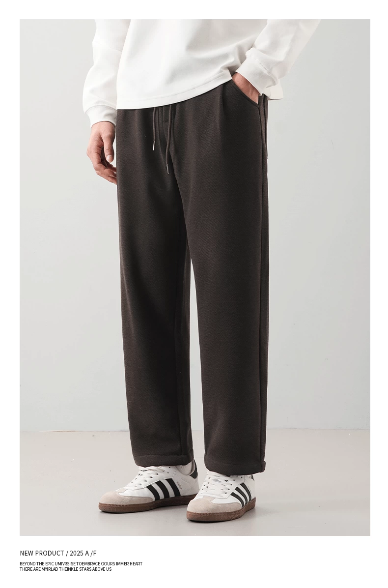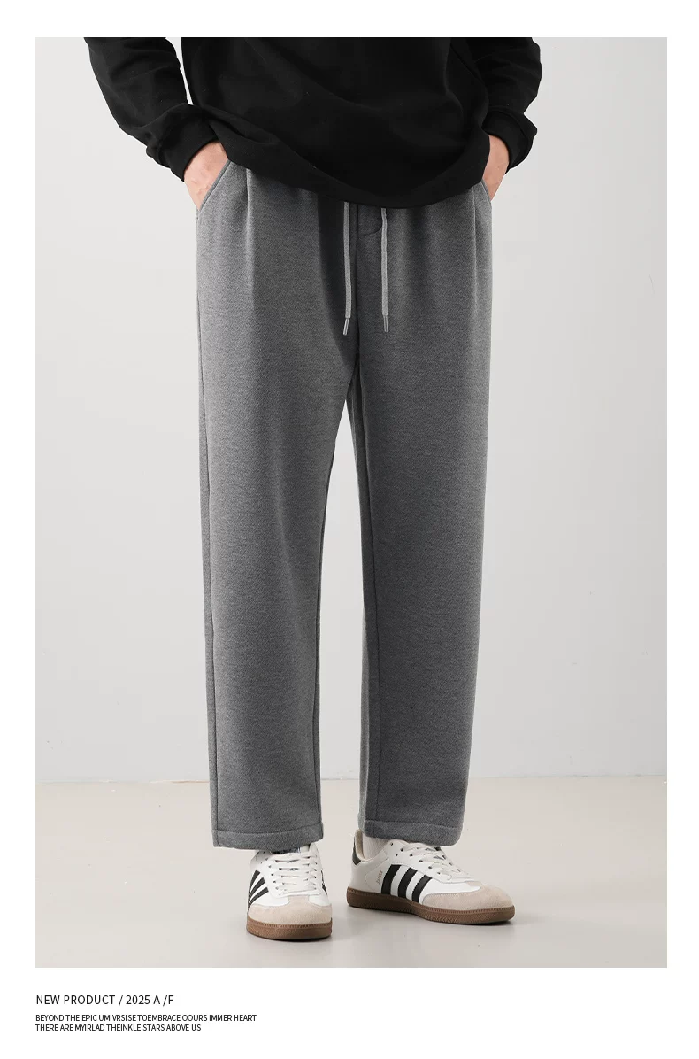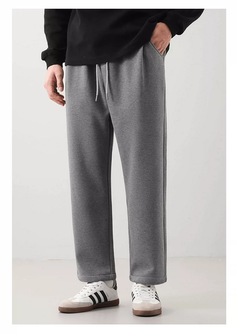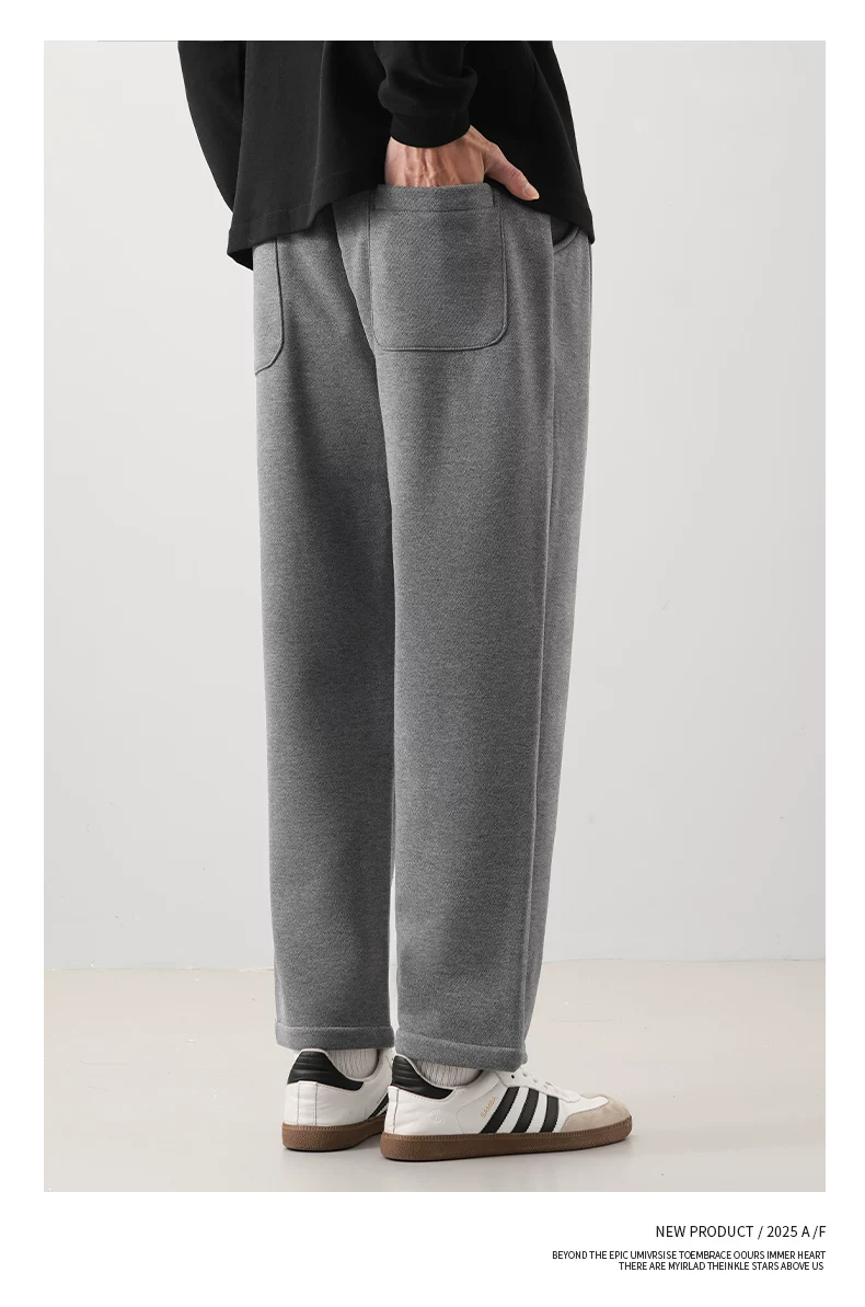 - Quần len dày OMZM dành cho nam, phong cách cổ điển mùa đông, lót lông cừu, quần ấm áp thường ngày, quần ống đứng rộng thùng thình