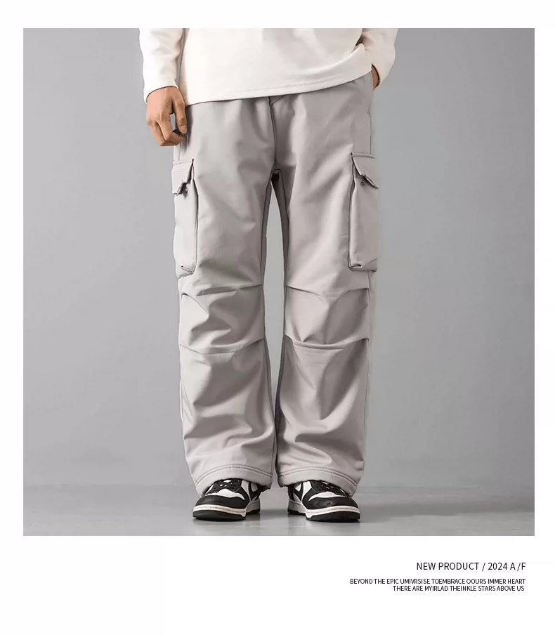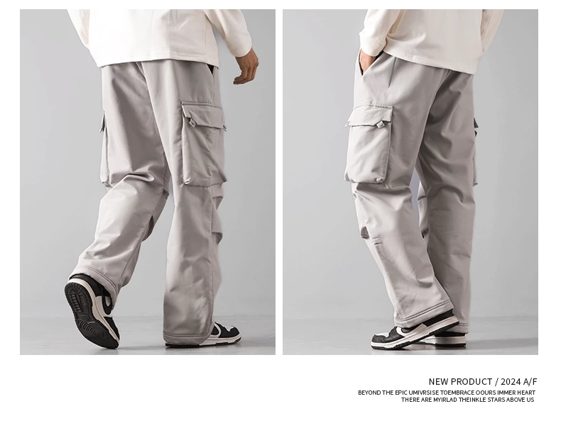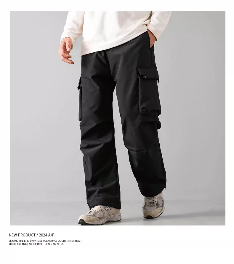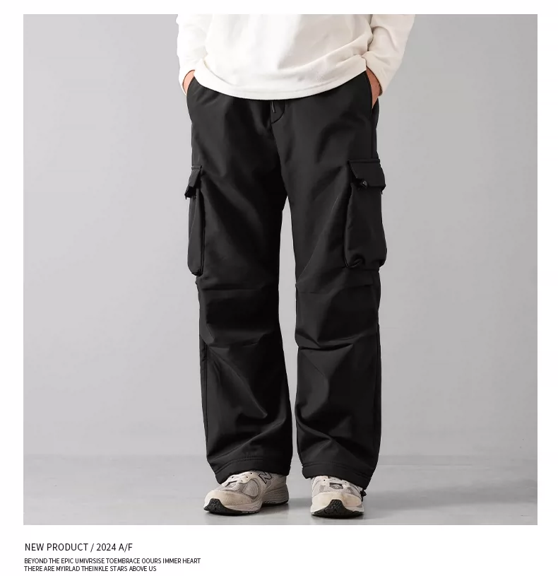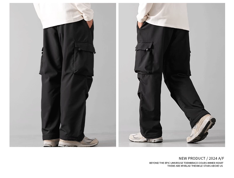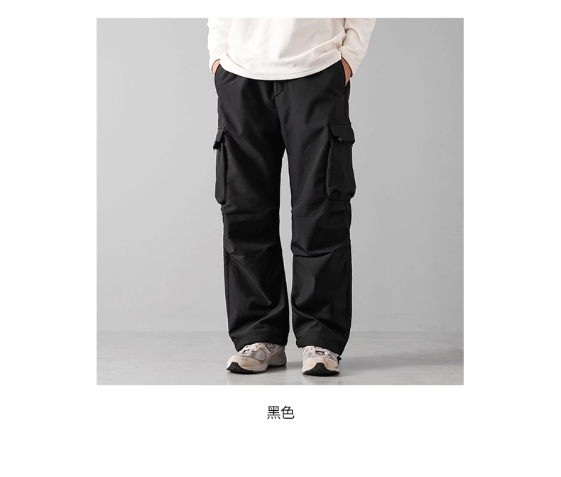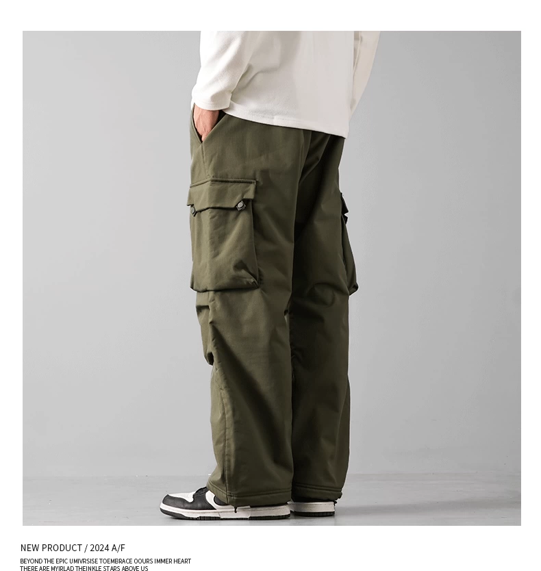 Quần lính dù dày dặn lót lông phong cách Mỹ OMZM mùa đông 2024, quần cargo giữ ấm lông cừu, dáng rộng, phong cách thường ngày, ống thẳng