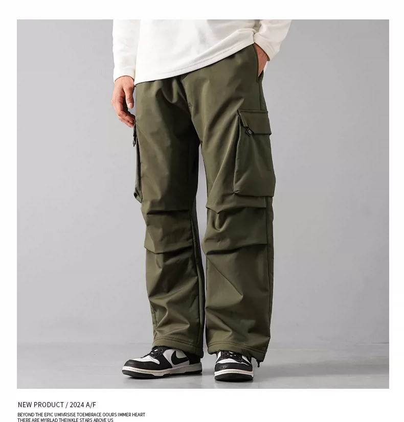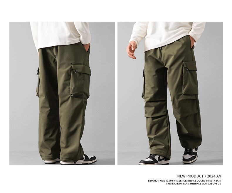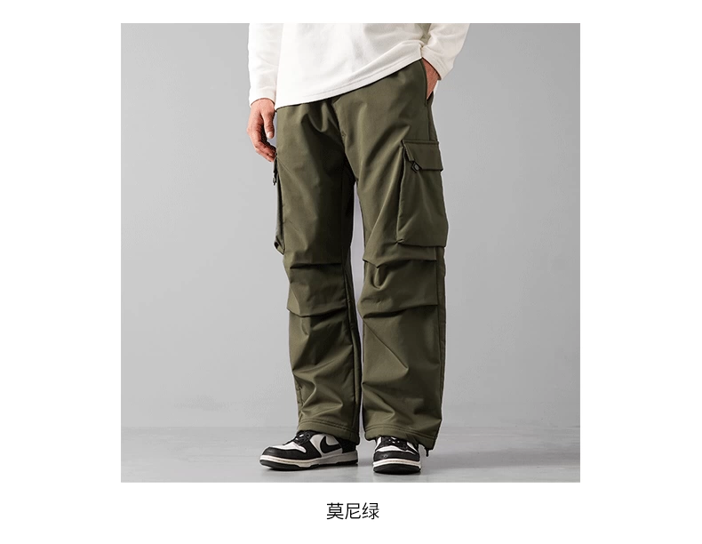 - Quần lính dù dày dặn lót lông phong cách Mỹ OMZM mùa đông 2024, quần cargo giữ ấm lông cừu, dáng rộng, phong cách thường ngày, ống thẳng