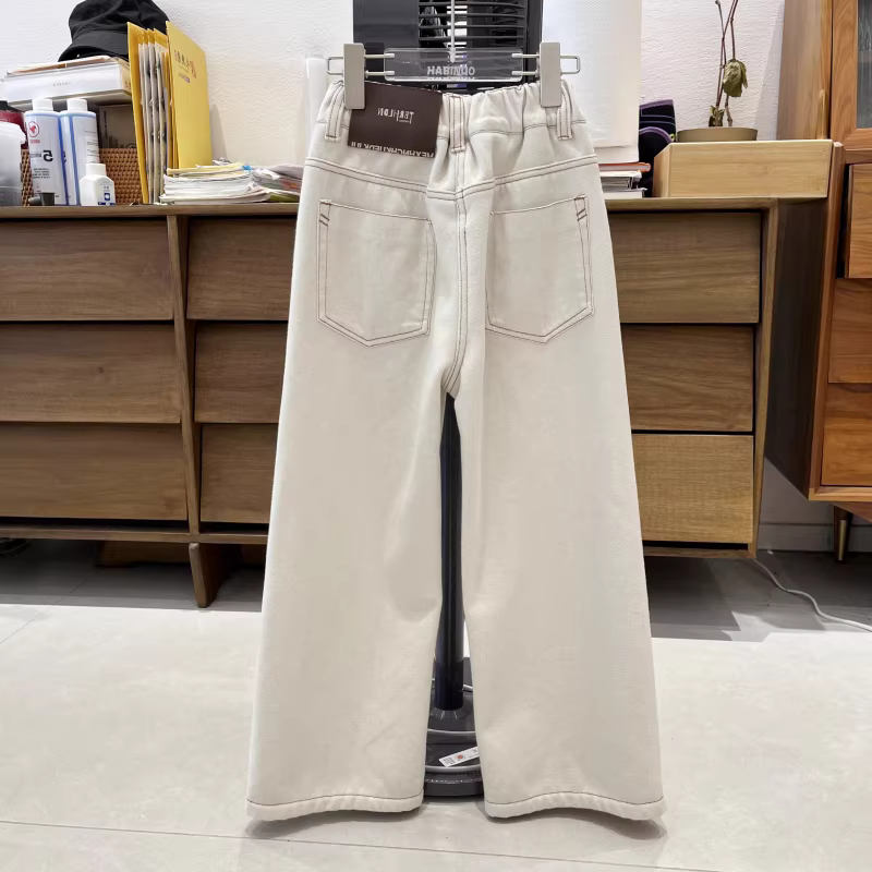 Quần lót lông cừu cho bé trai và bé gái, quần áo mùa đông lót lông cừu một mảnh, quần jean ống rộng ôm vừa vặn mới dành cho trẻ em, quần ống đứng thông thường cỡ vừa và lớn dành cho trẻ em