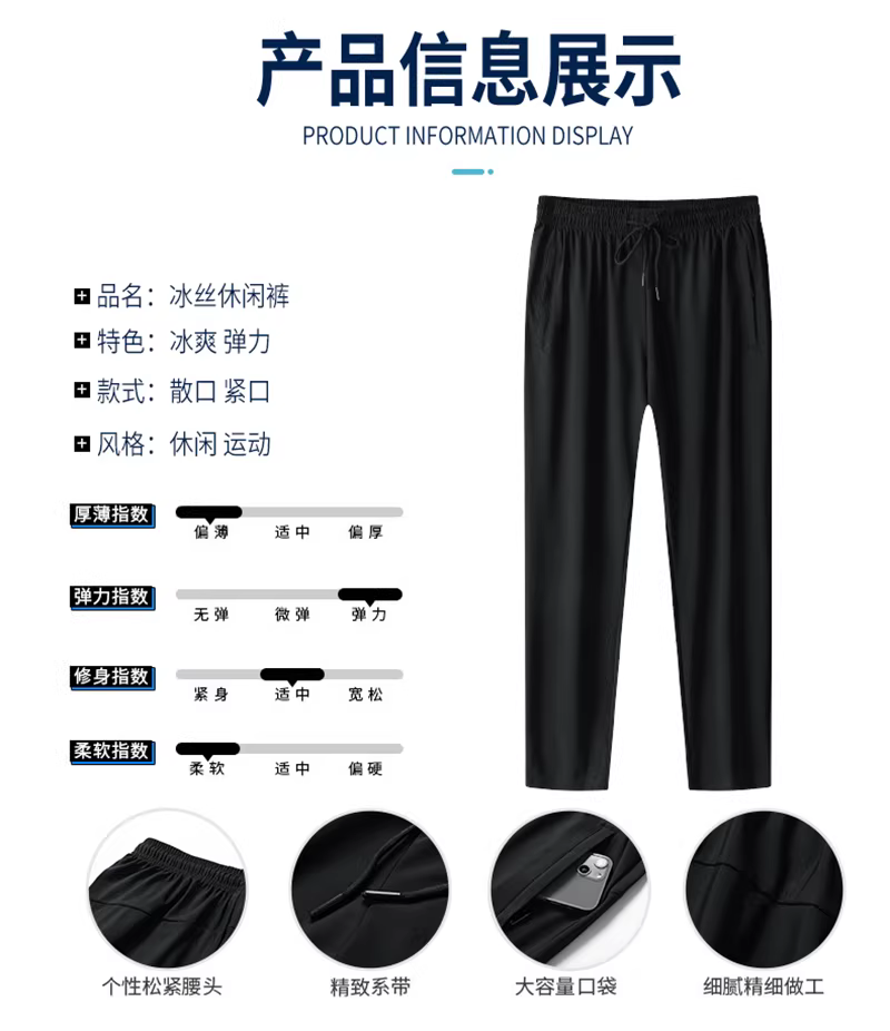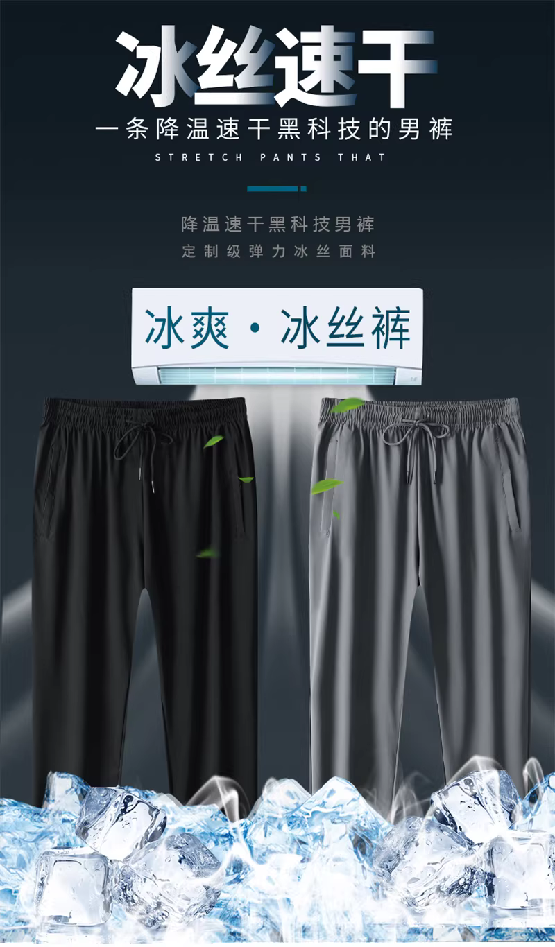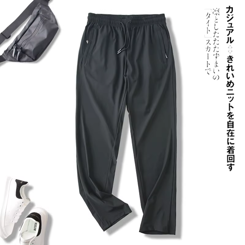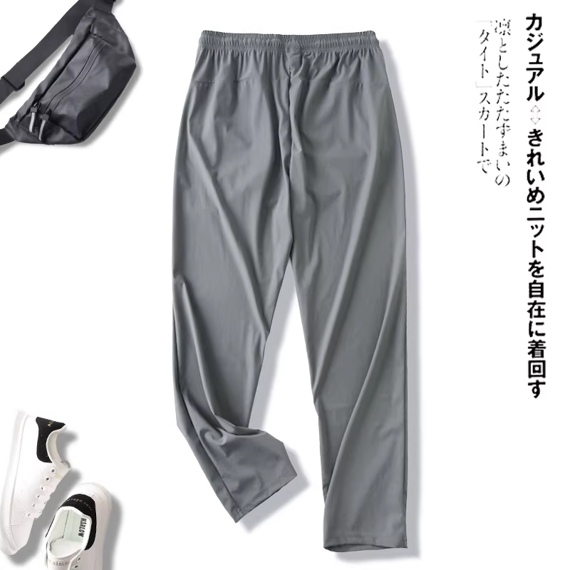 Quần lụa băng Don Quixote! Quần nam chất liệu thun co giãn bốn chiều, kiểu dáng đơn giản, cạp chun, ống lửng, mặc thoải mái.
