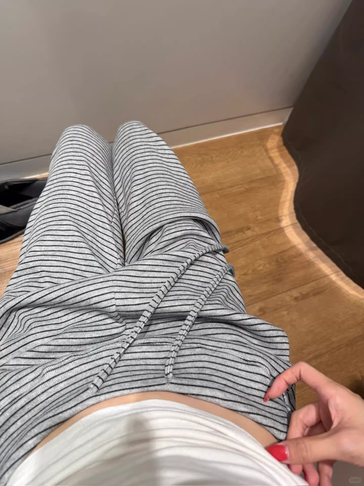 - Quần lửng sọc giản dị kiểu lười dành cho nữ, mùa thu đông, cỡ lớn, lưng cao, dáng rộng, giảm béo, dáng rộng, quần ống rộng lót lông cừu.