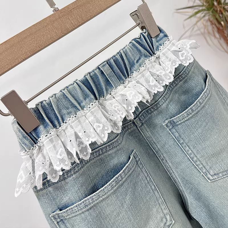 - Quần ống đứng cho bé gái, kiểu xuân thu 25 mới, quần ống rộng viền ren cho trẻ lớn, quần thường ngày thời trang cho trẻ em.